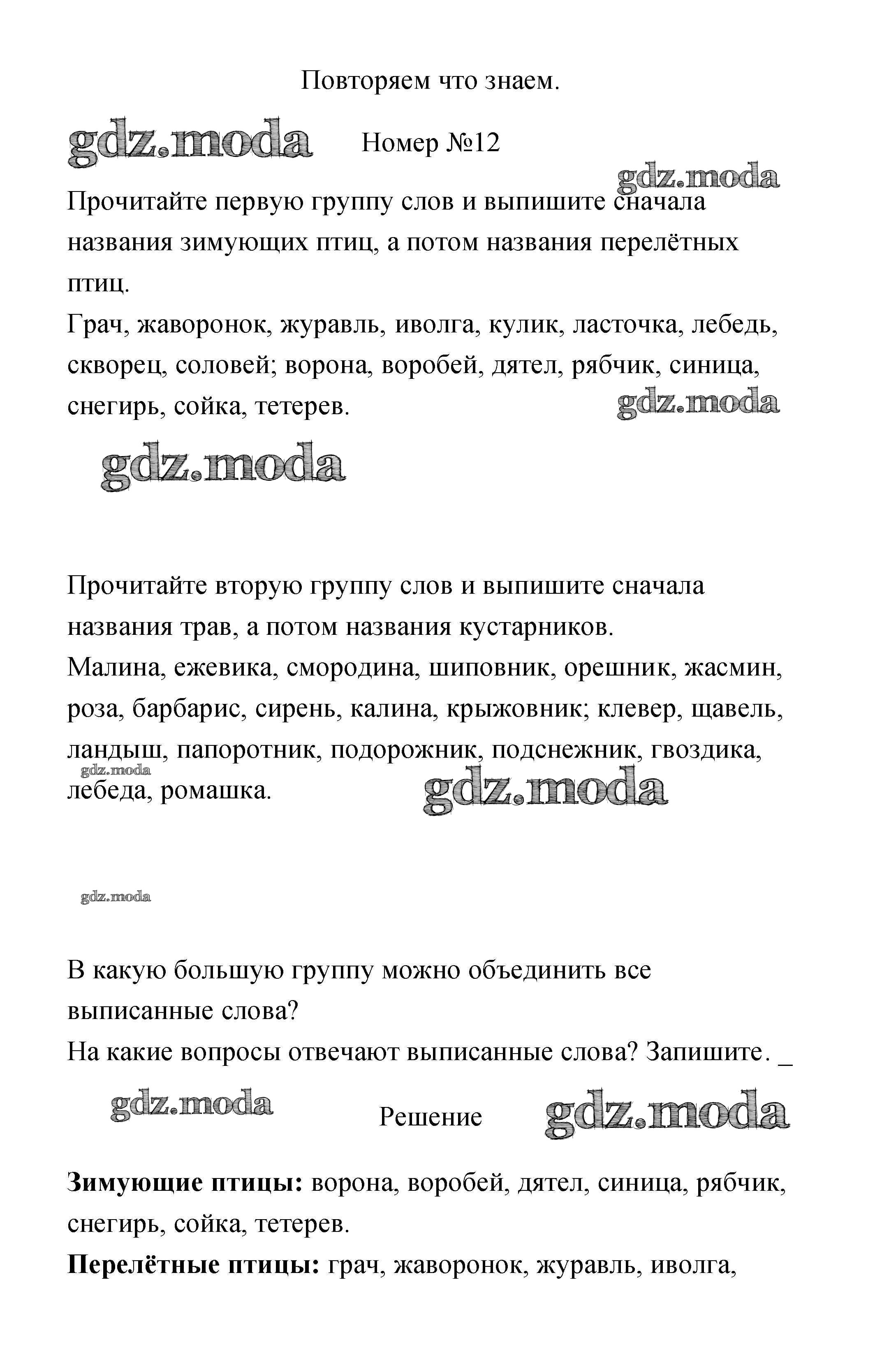 ОТВЕТ на задание № 12 Рабочая тетрадь по Русскому языку 3 класс Климанова Перспектива