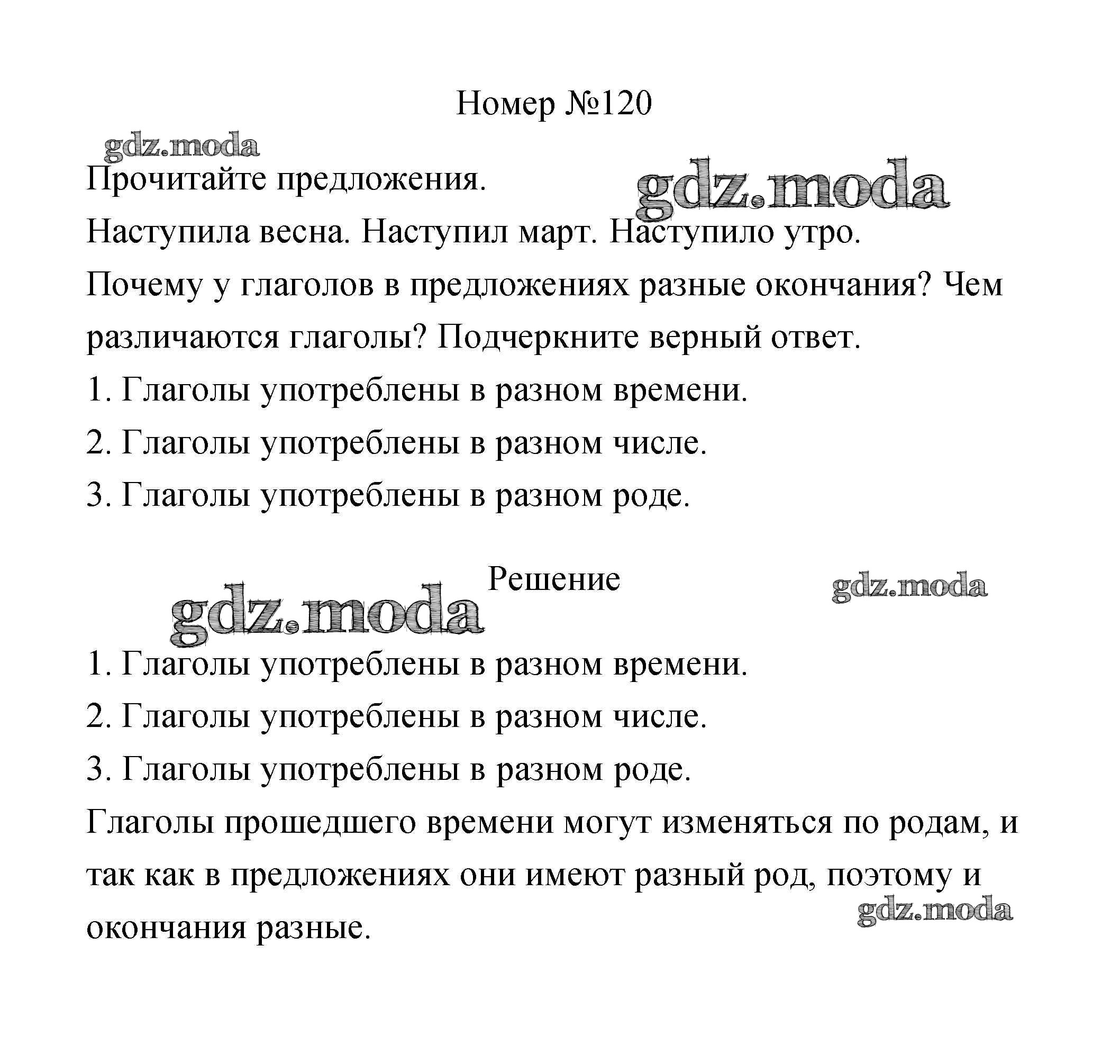 ОТВЕТ на задание № 120 Рабочая тетрадь по Русскому языку 3 класс Климанова Перспектива