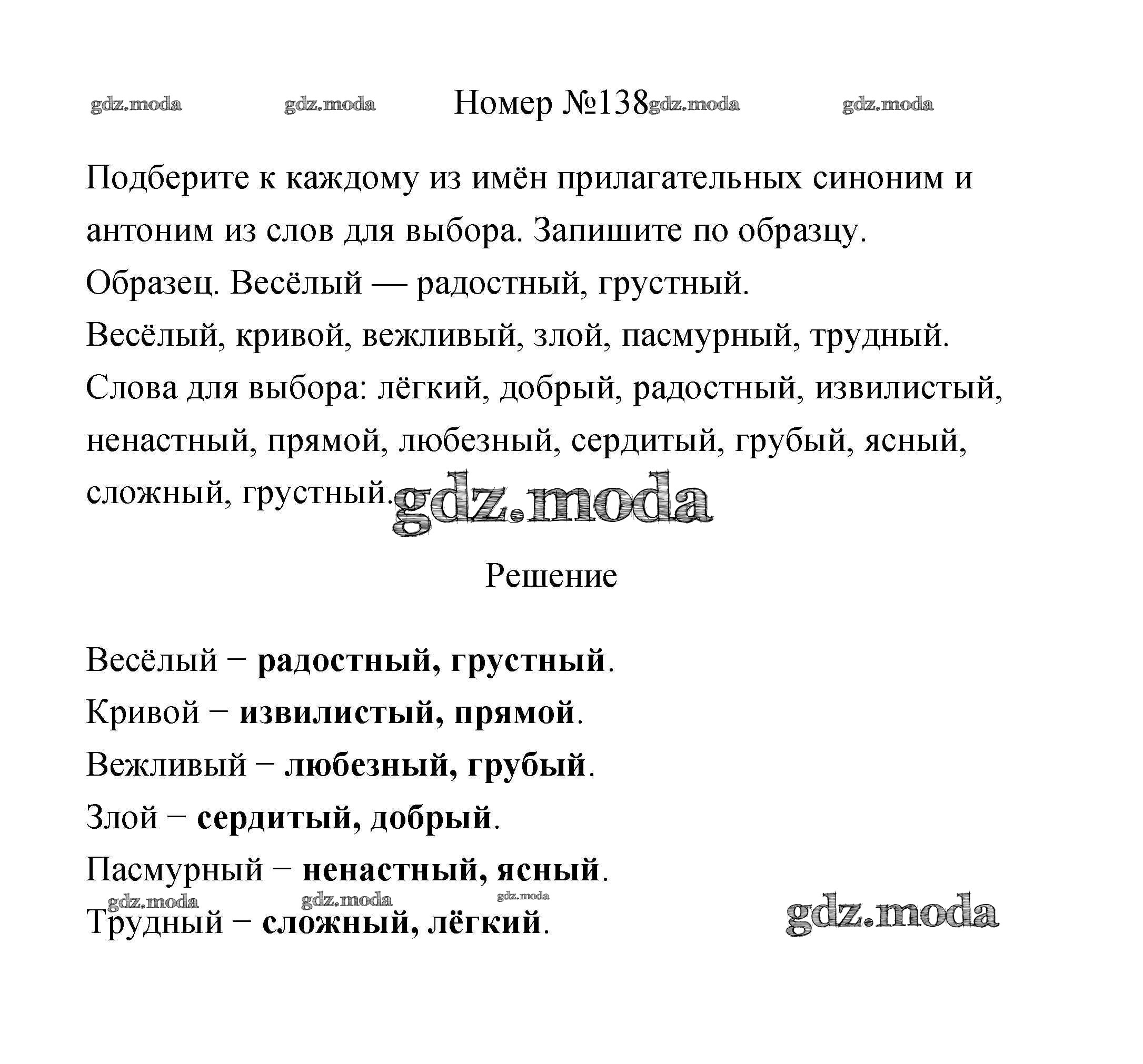 ОТВЕТ на задание № 138 Рабочая тетрадь по Русскому языку 3 класс Климанова Перспектива