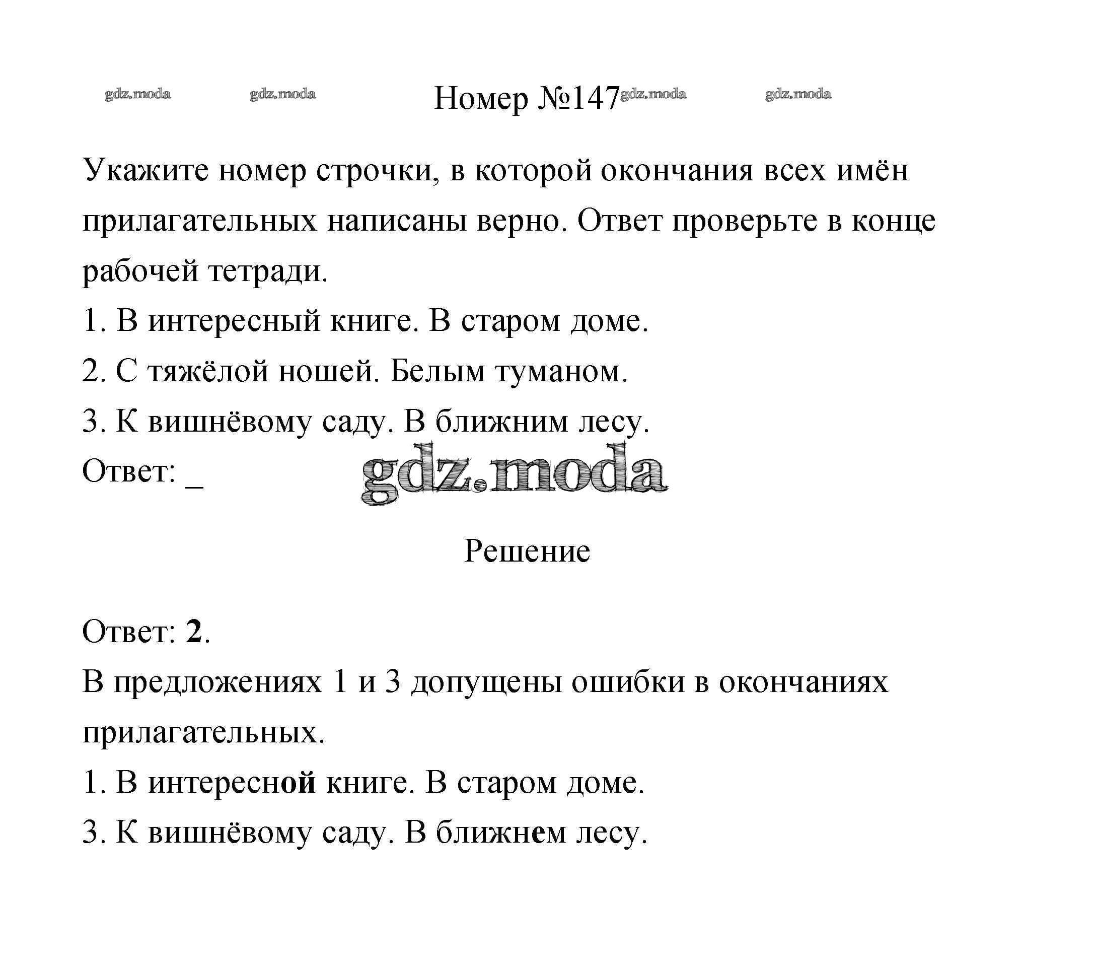 ОТВЕТ на задание № 147 Рабочая тетрадь по Русскому языку 3 класс Климанова Перспектива