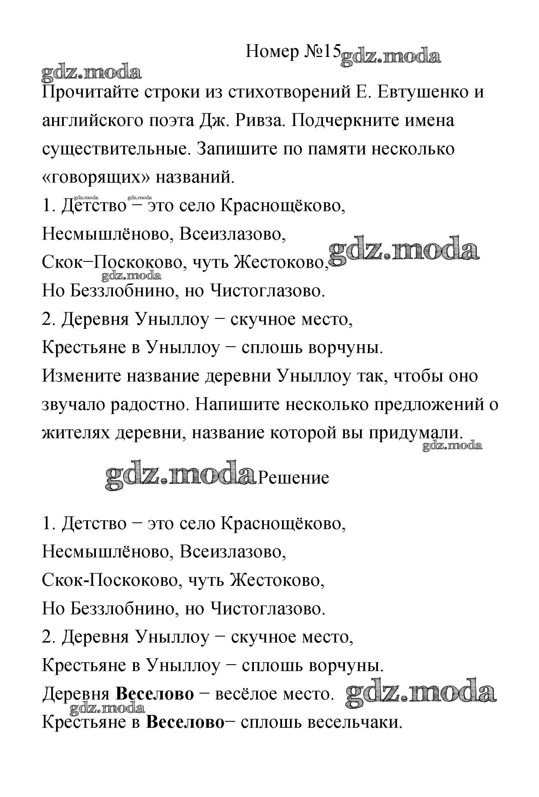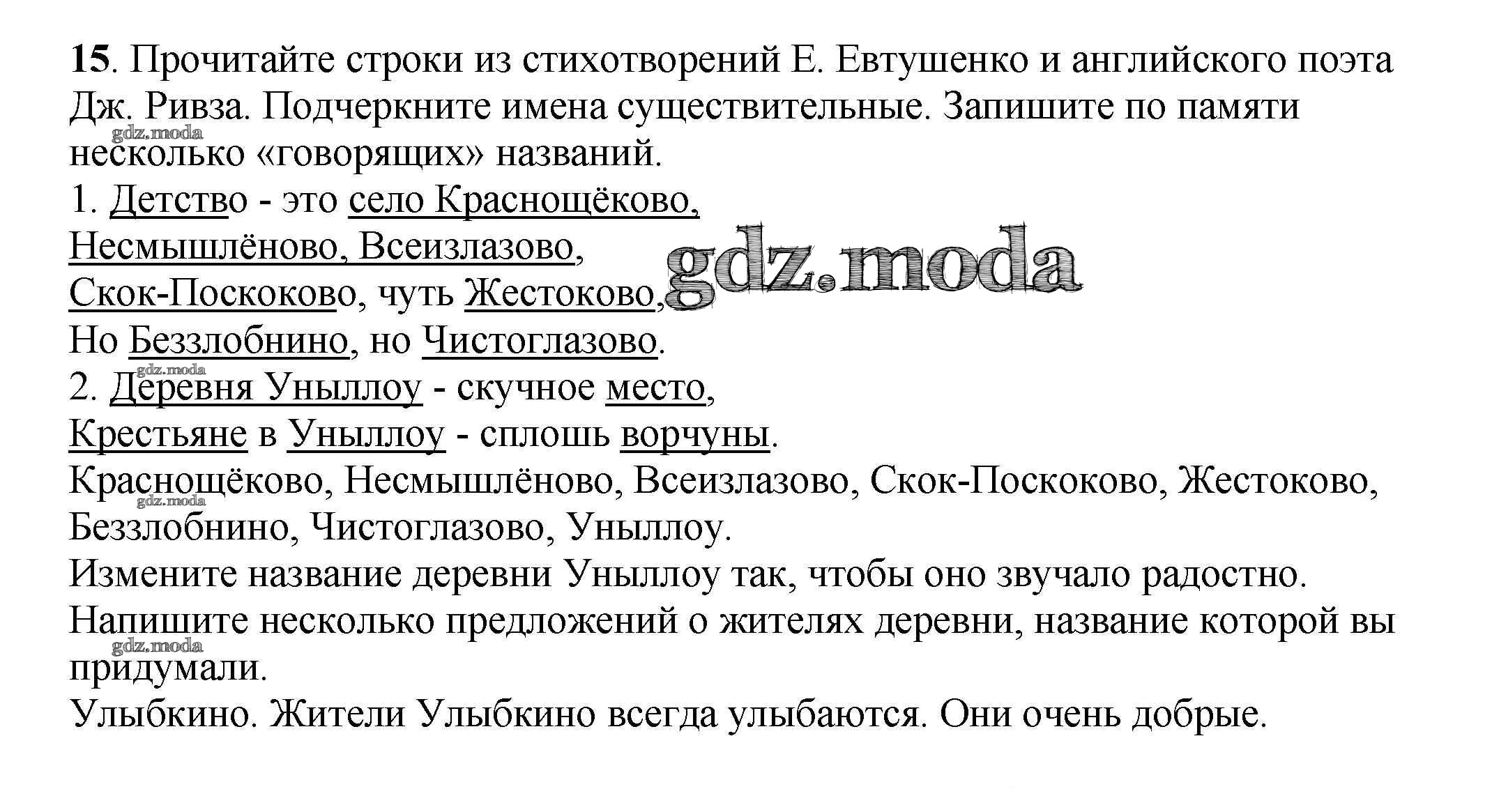 ОТВЕТ на задание № 15 Рабочая тетрадь по Русскому языку 3 класс Климанова Перспектива