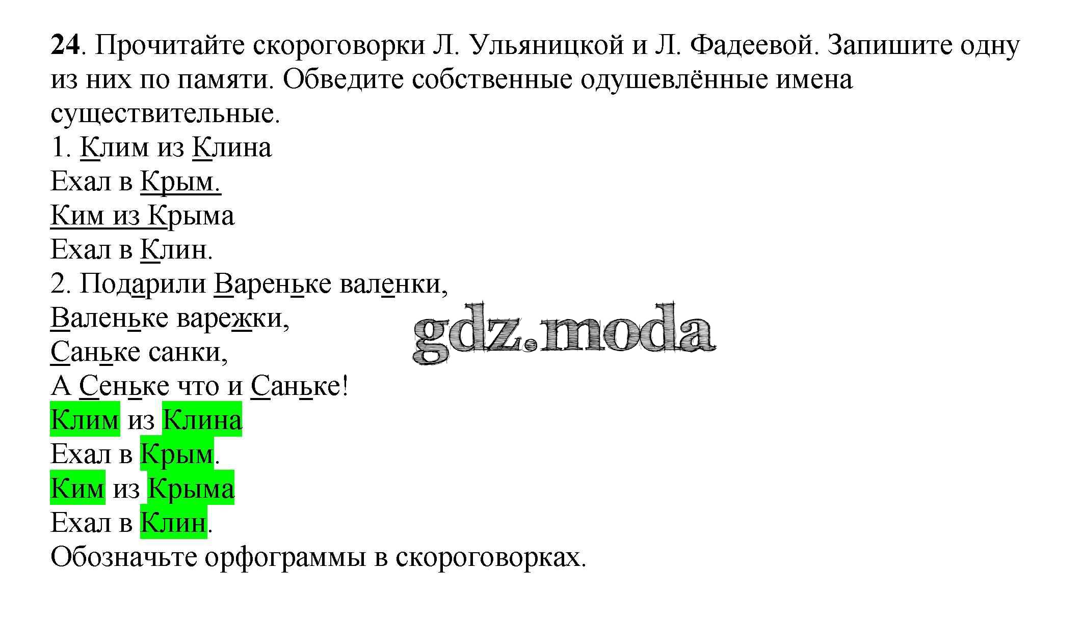 ОТВЕТ на задание № 24 Рабочая тетрадь по Русскому языку 3 класс Климанова Перспектива