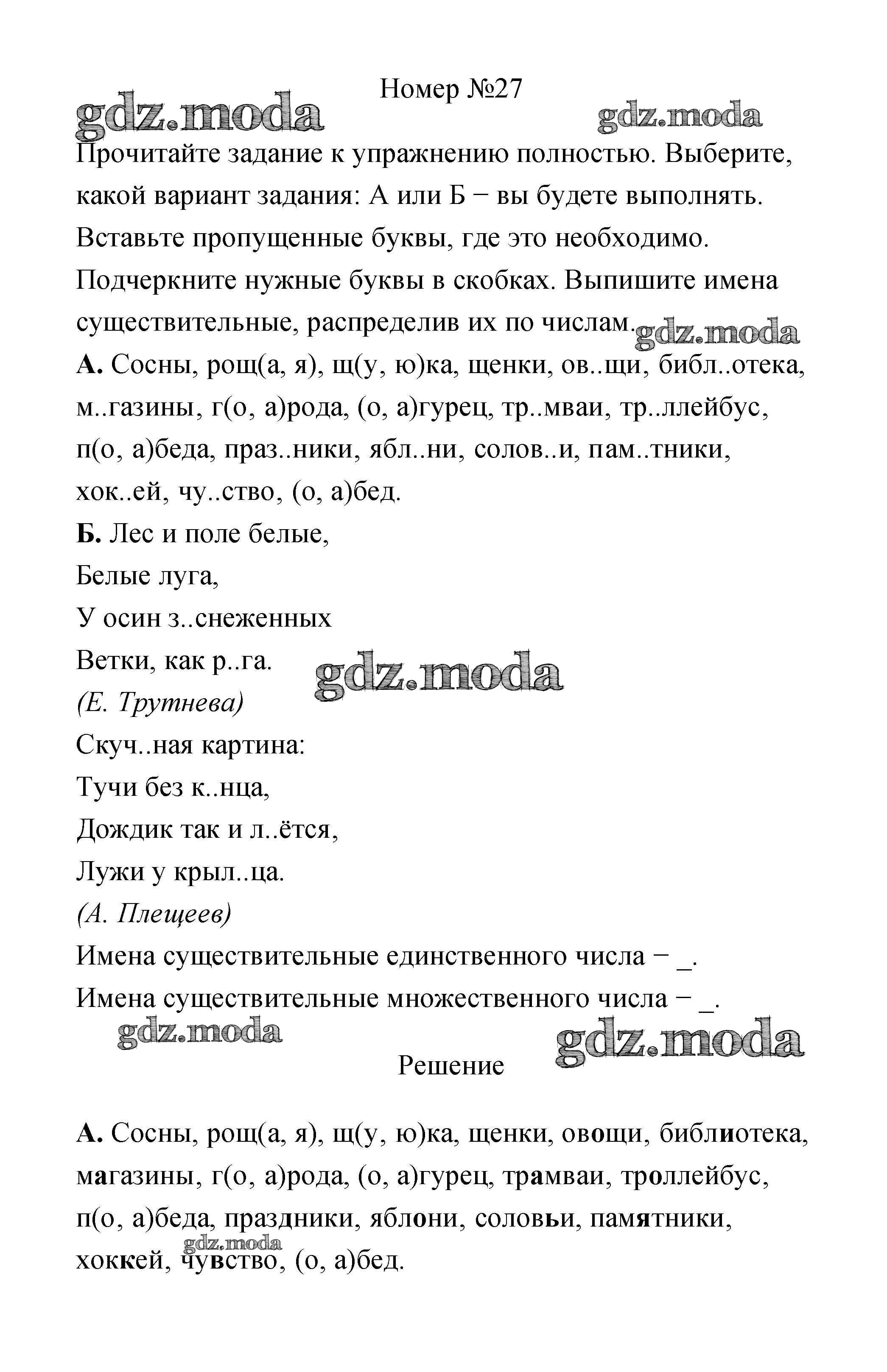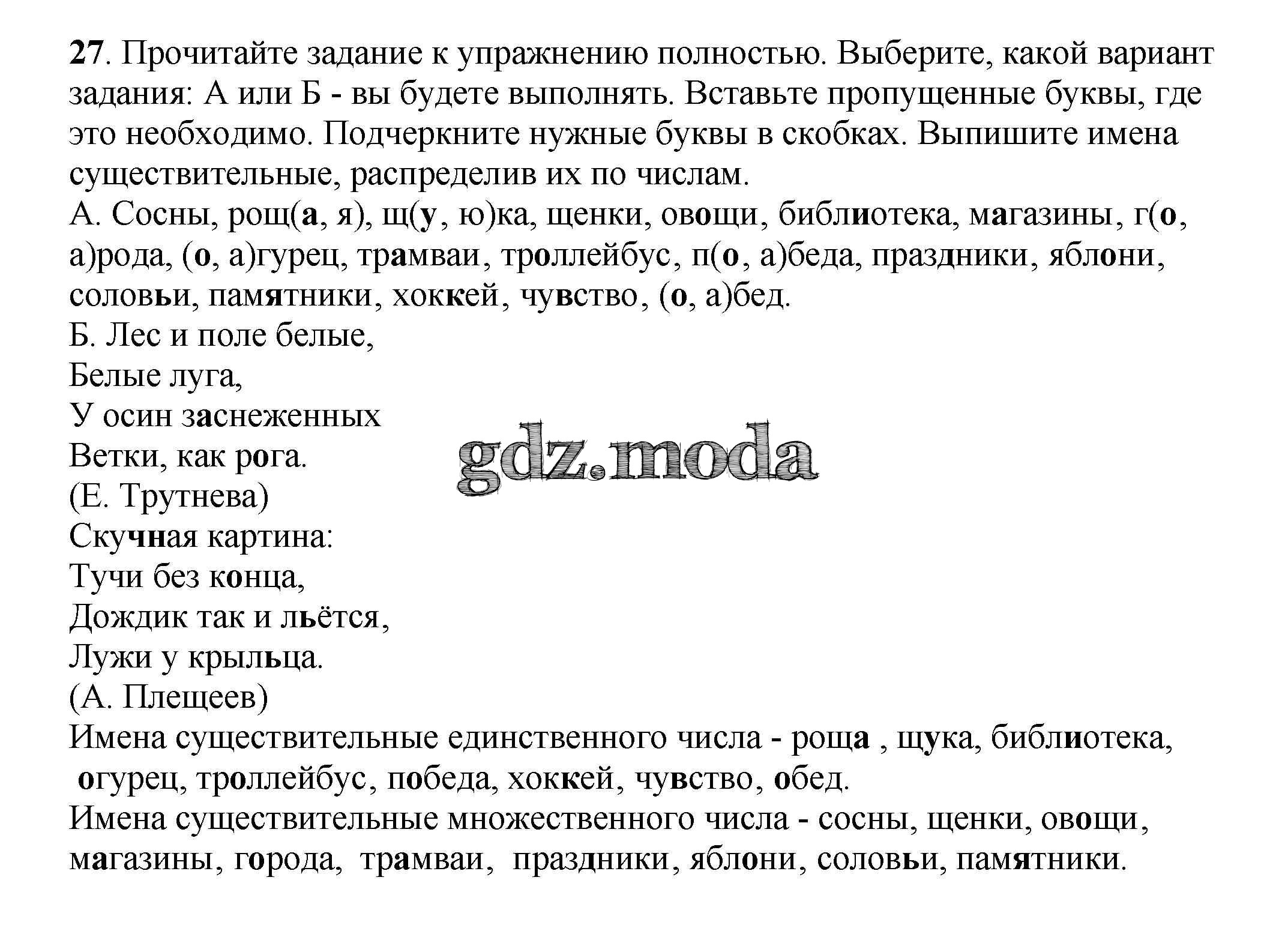 ОТВЕТ на задание № 27 Рабочая тетрадь по Русскому языку 3 класс Климанова Перспектива