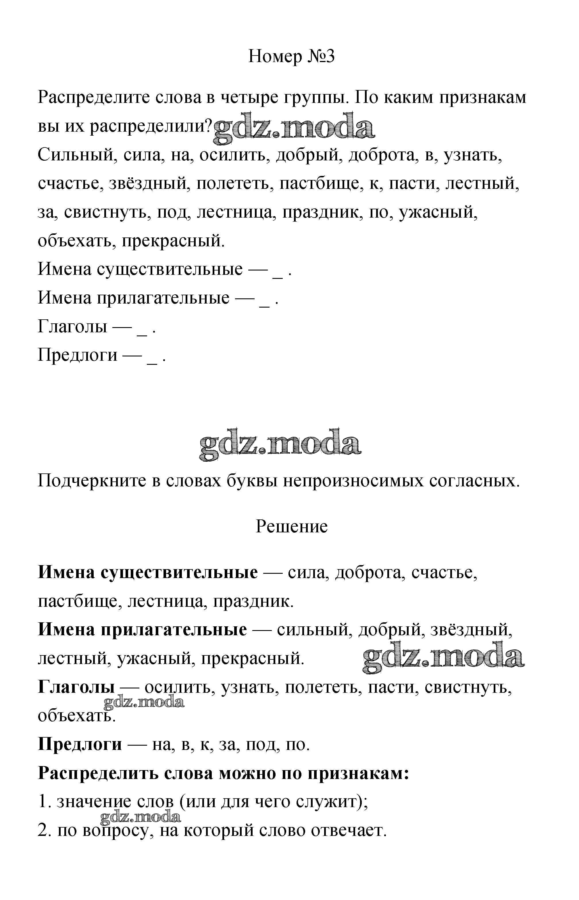 ОТВЕТ на задание № 3 Рабочая тетрадь по Русскому языку 3 класс Климанова Перспектива