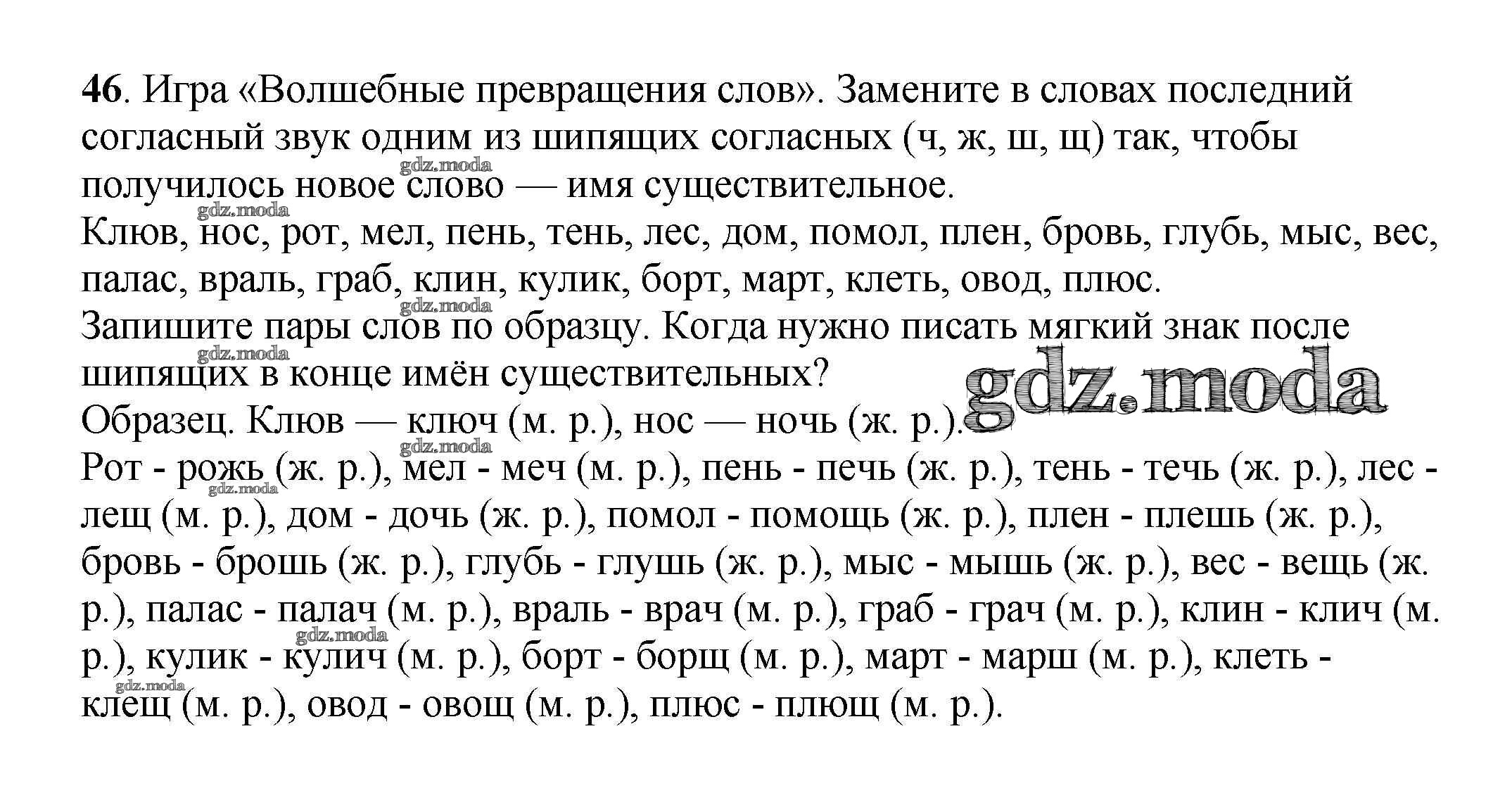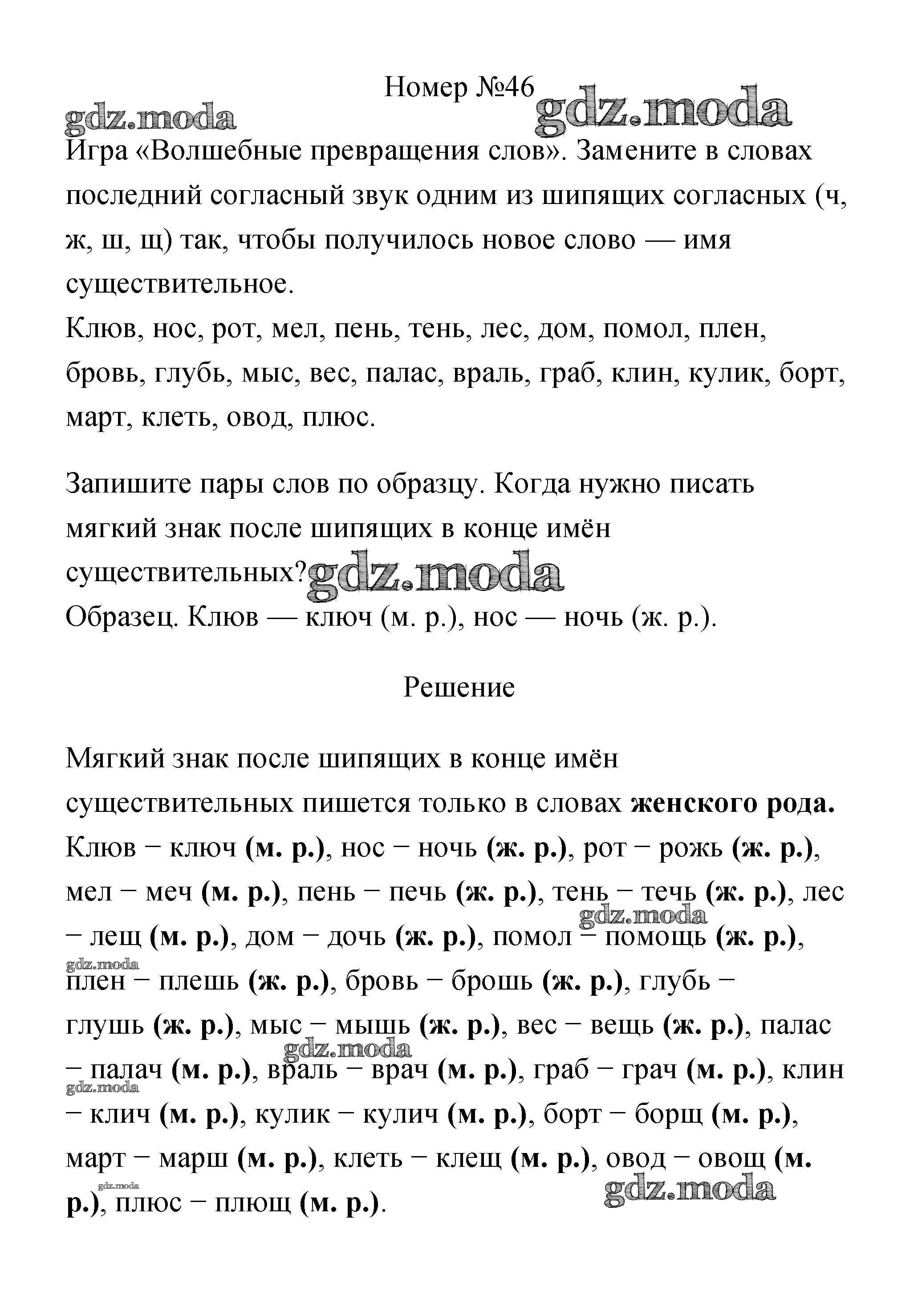 ОТВЕТ на задание № 46 Рабочая тетрадь по Русскому языку 3 класс Климанова Перспектива