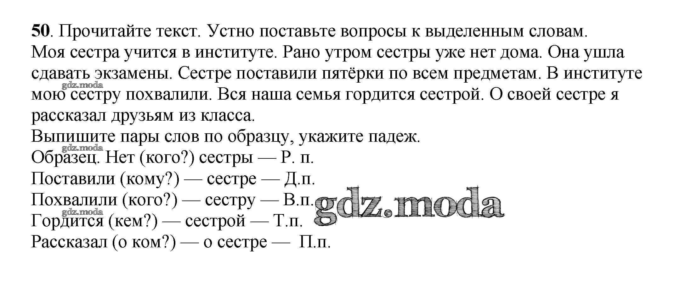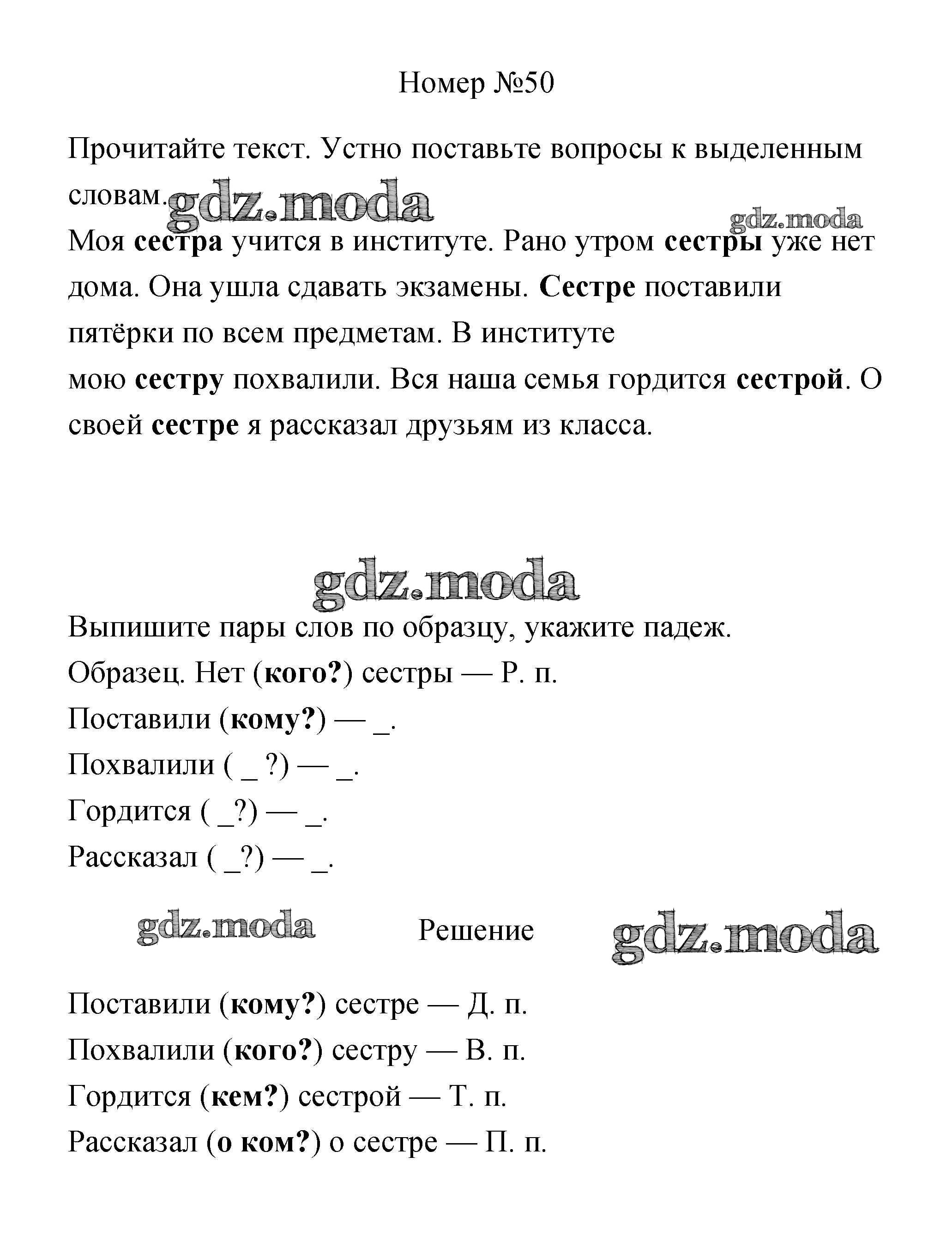 ОТВЕТ на задание № 50 Рабочая тетрадь по Русскому языку 3 класс Климанова Перспектива