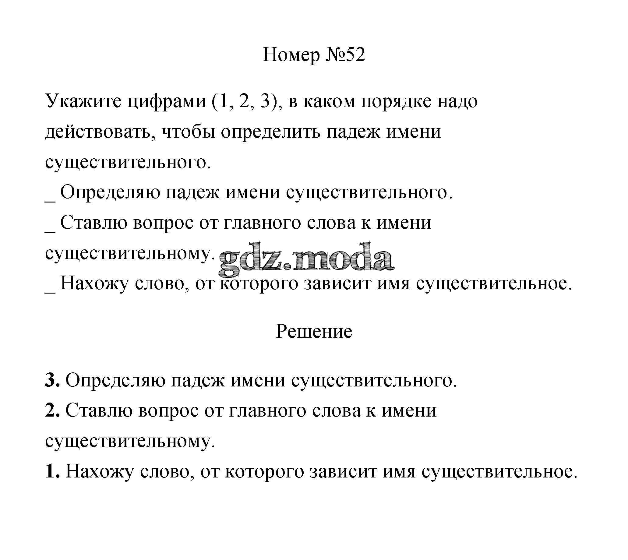 ОТВЕТ на задание № 52 Рабочая тетрадь по Русскому языку 3 класс Климанова Перспектива