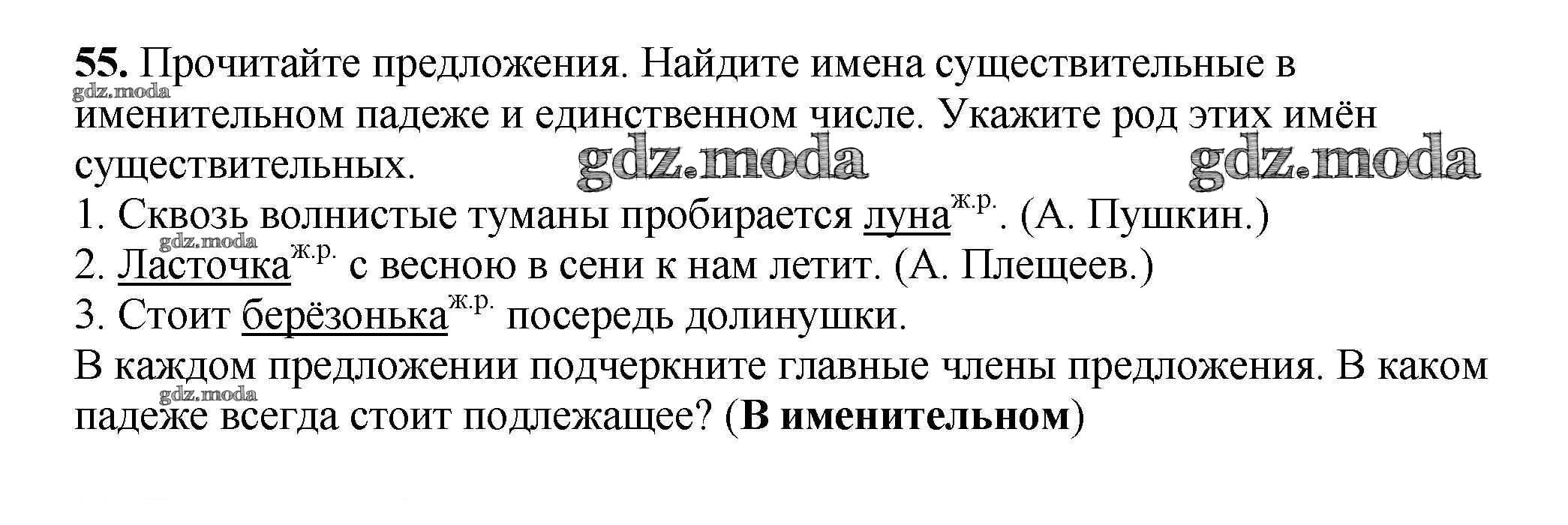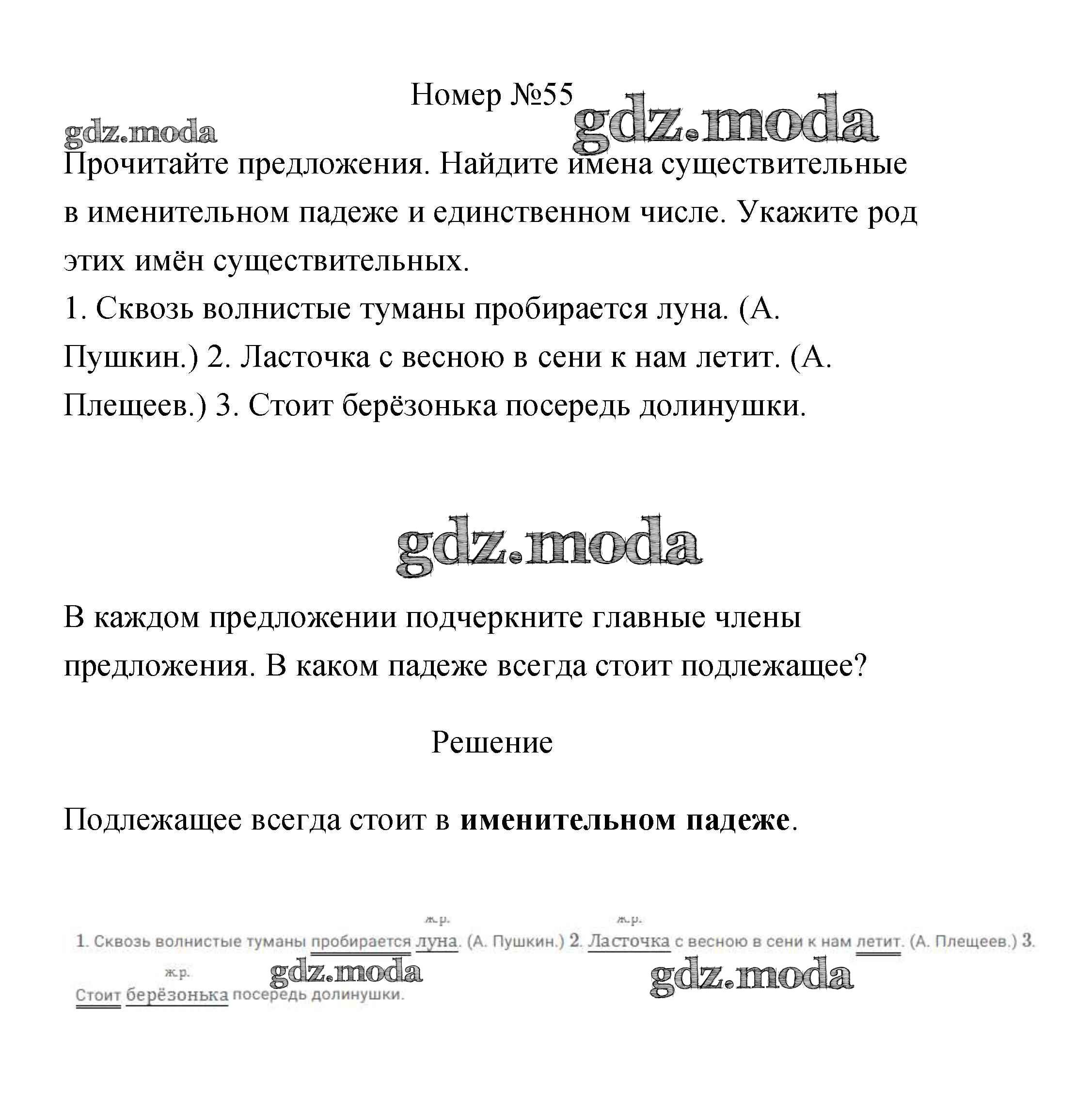 ОТВЕТ на задание № 55 Рабочая тетрадь по Русскому языку 3 класс Климанова Перспектива