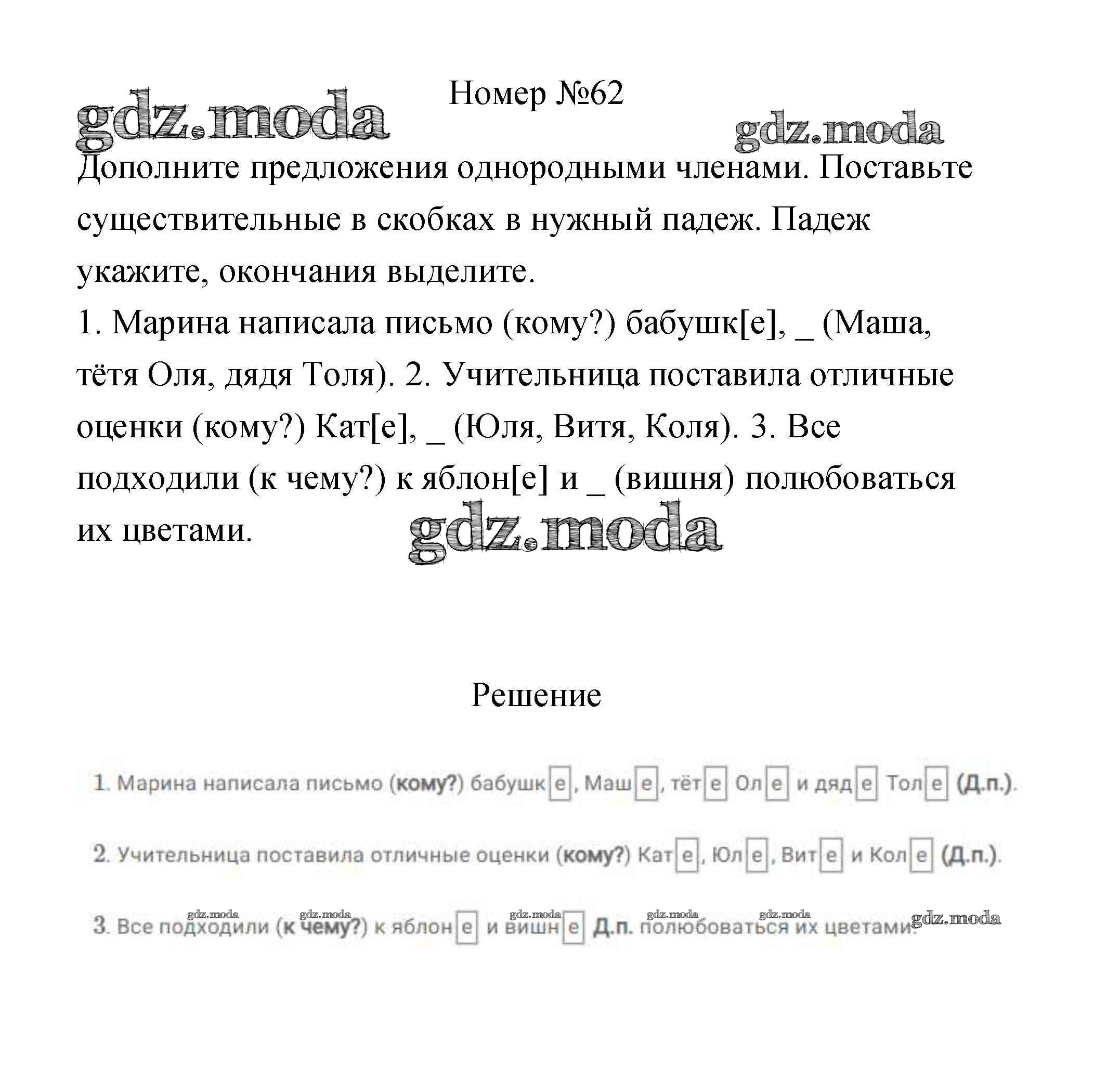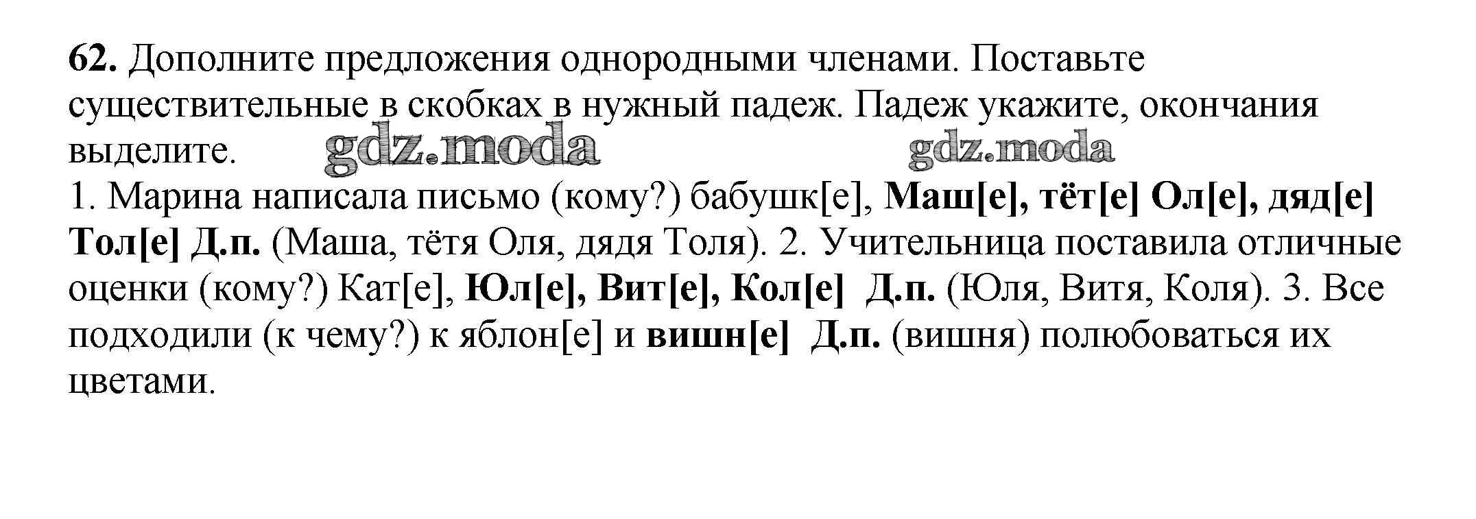 ОТВЕТ на задание № 62 Рабочая тетрадь по Русскому языку 3 класс Климанова Перспектива