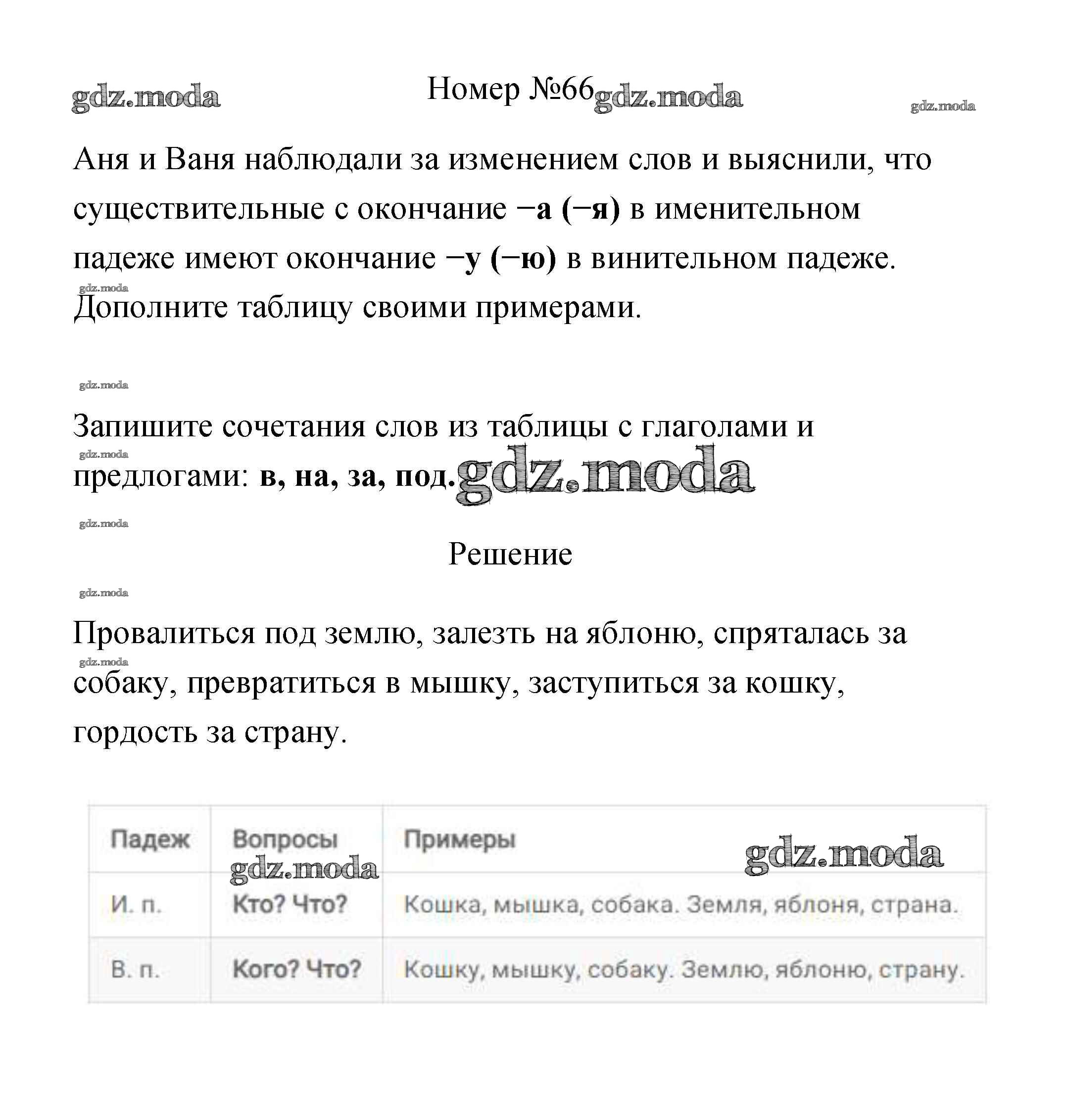 ОТВЕТ на задание № 66 Рабочая тетрадь по Русскому языку 3 класс Климанова Перспектива