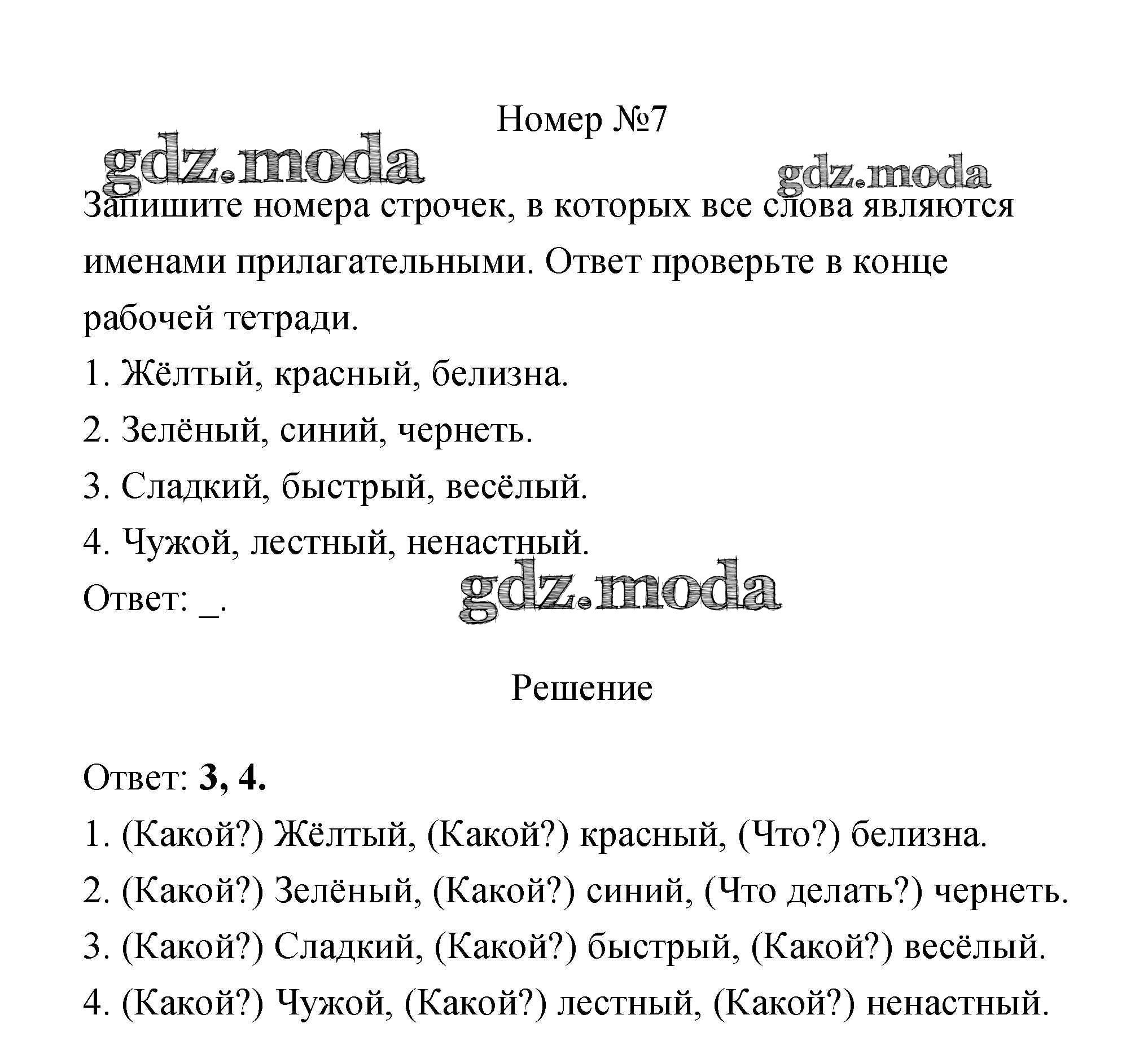 ОТВЕТ на задание № 7 Рабочая тетрадь по Русскому языку 3 класс Климанова Перспектива