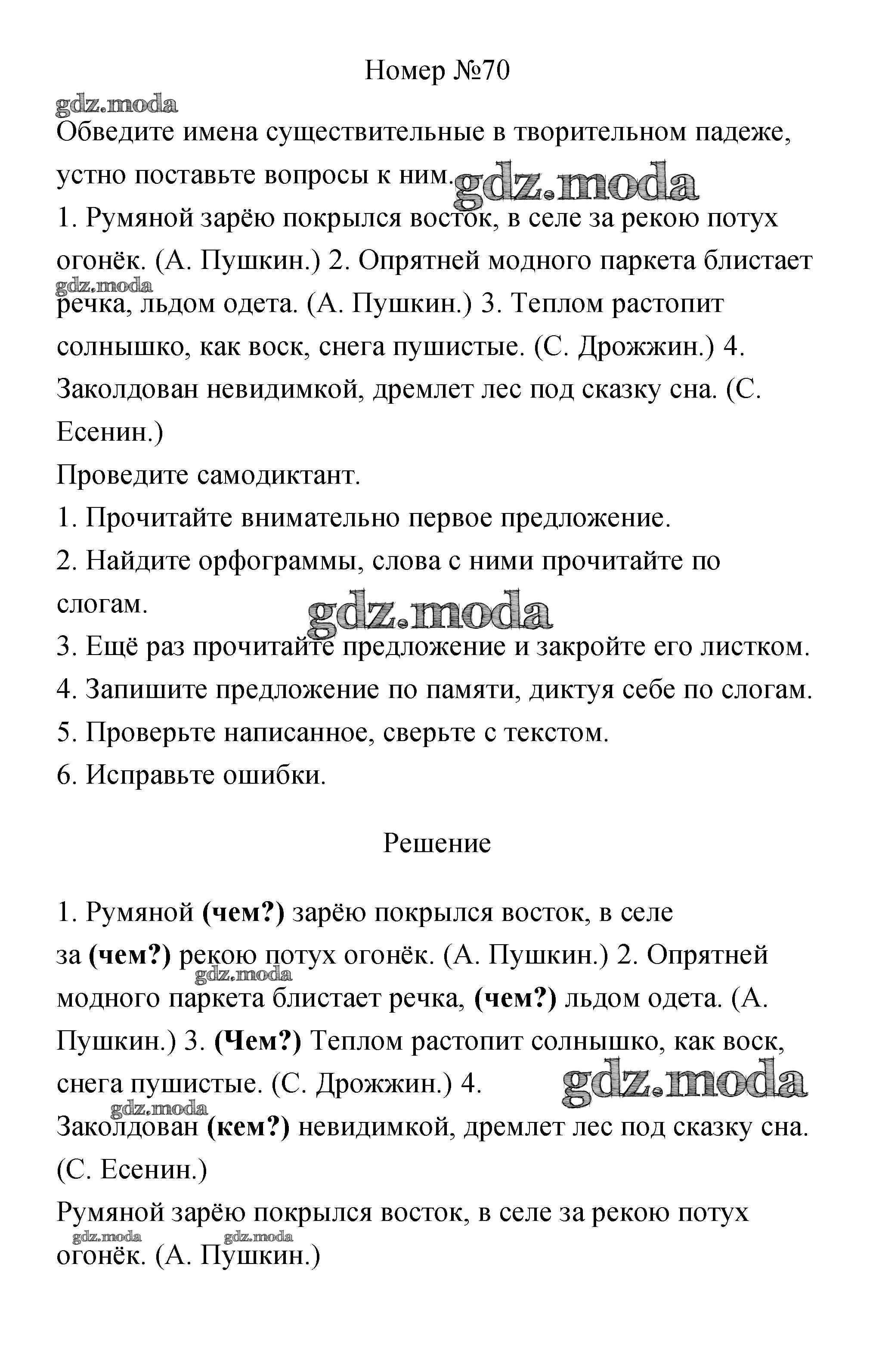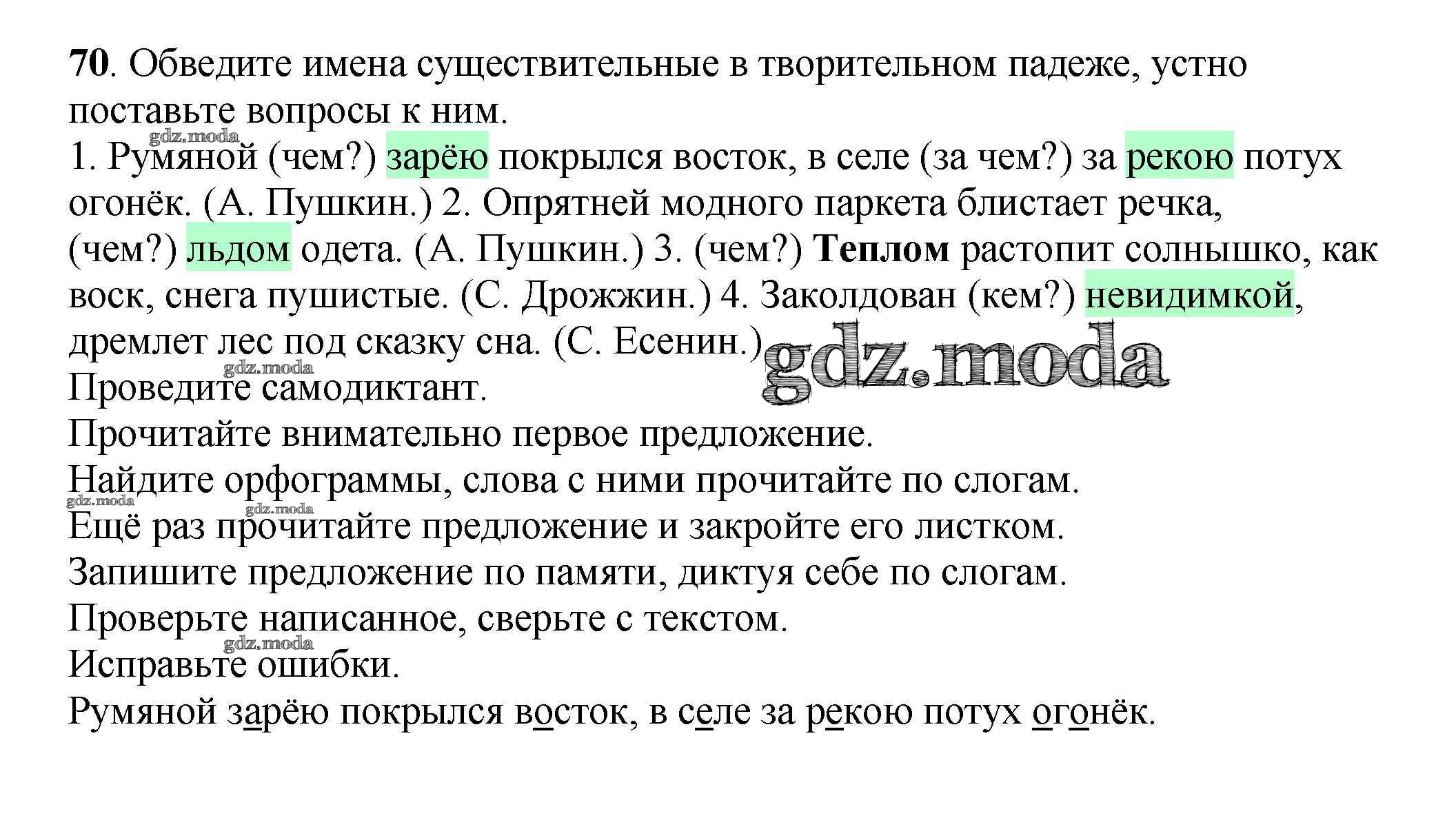 ОТВЕТ на задание № 70 Рабочая тетрадь по Русскому языку 3 класс Климанова Перспектива