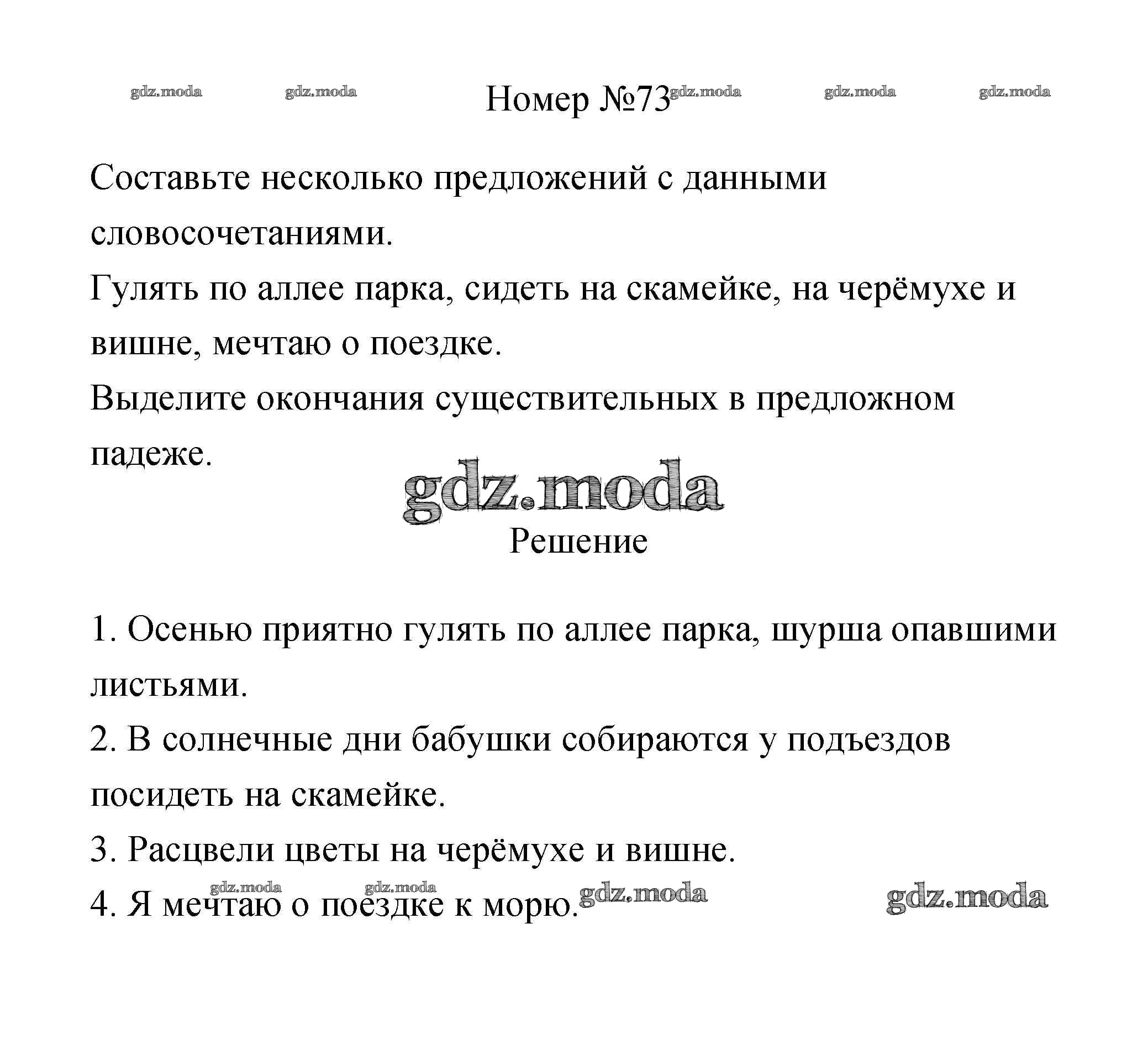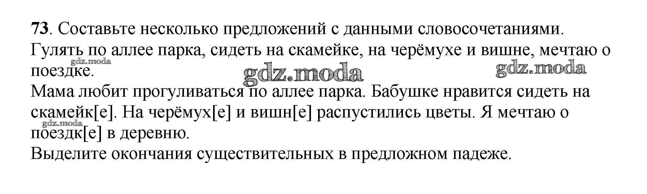 ОТВЕТ на задание № 73 Рабочая тетрадь по Русскому языку 3 класс Климанова Перспектива