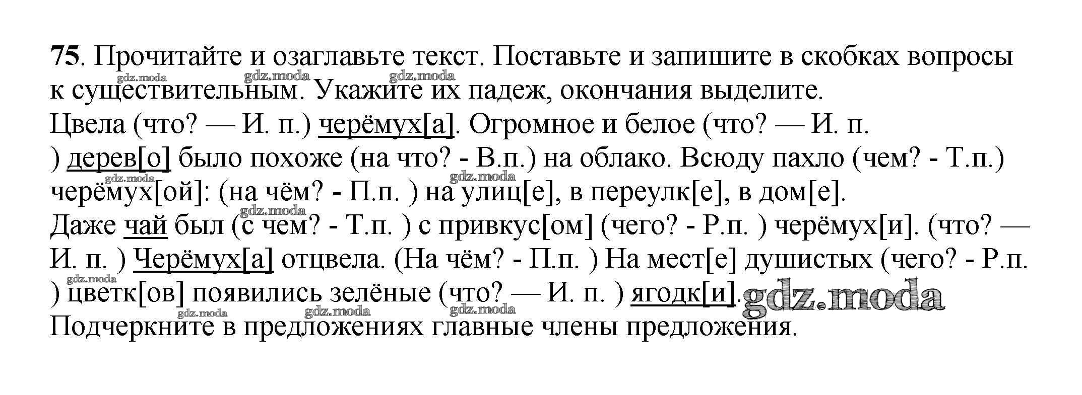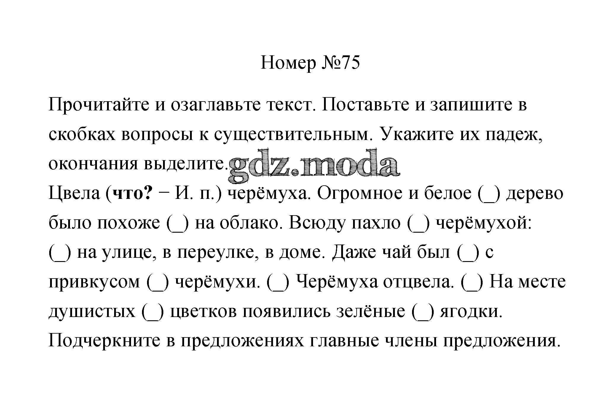 ОТВЕТ на задание № 75 Рабочая тетрадь по Русскому языку 3 класс Климанова Перспектива