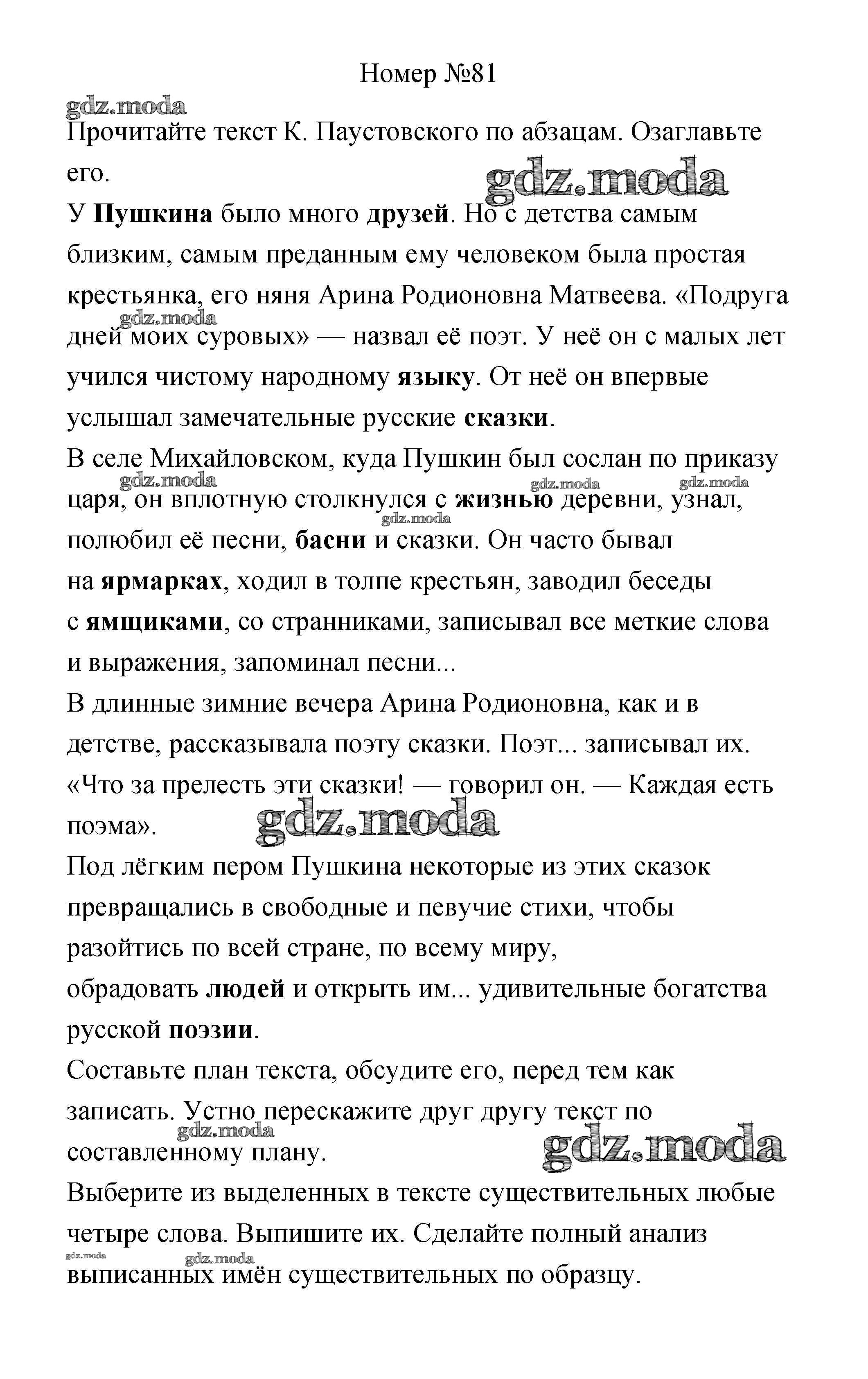 ОТВЕТ на задание № 81 Рабочая тетрадь по Русскому языку 3 класс Климанова Перспектива