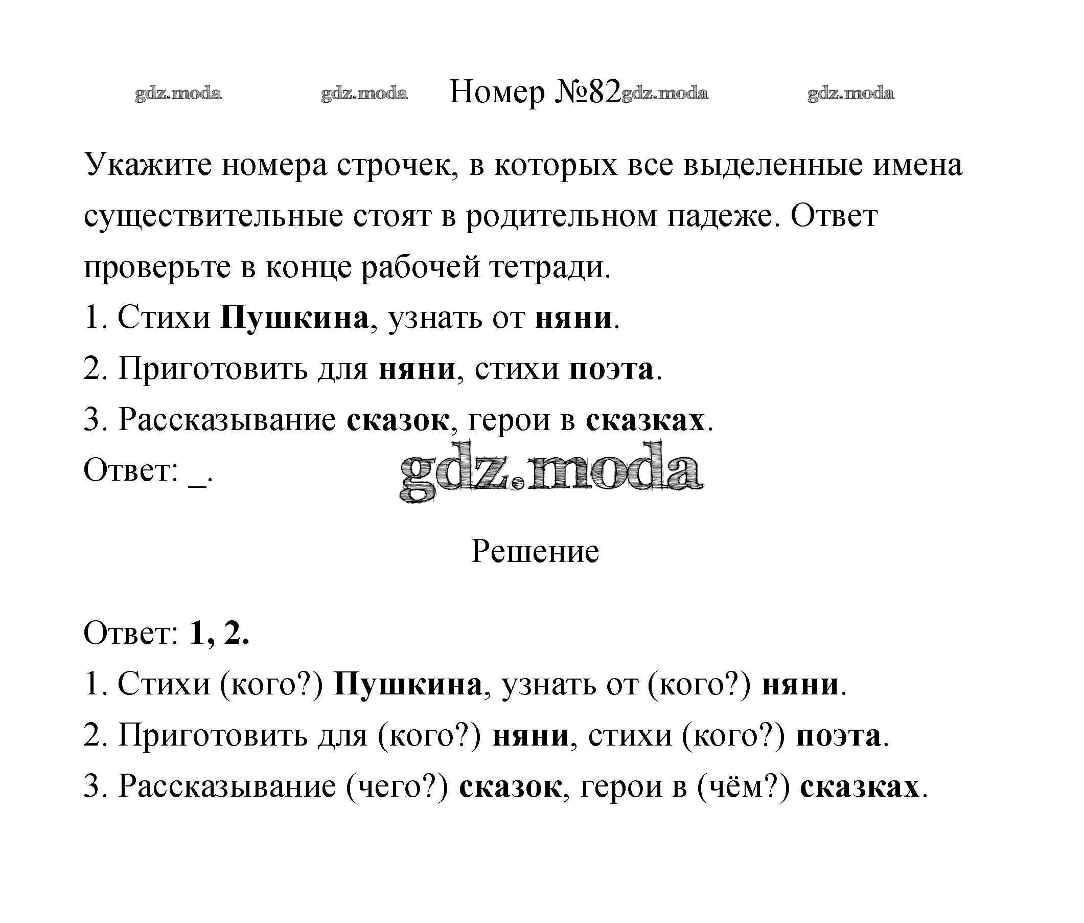 ОТВЕТ на задание № 82 Рабочая тетрадь по Русскому языку 3 класс Климанова Перспектива