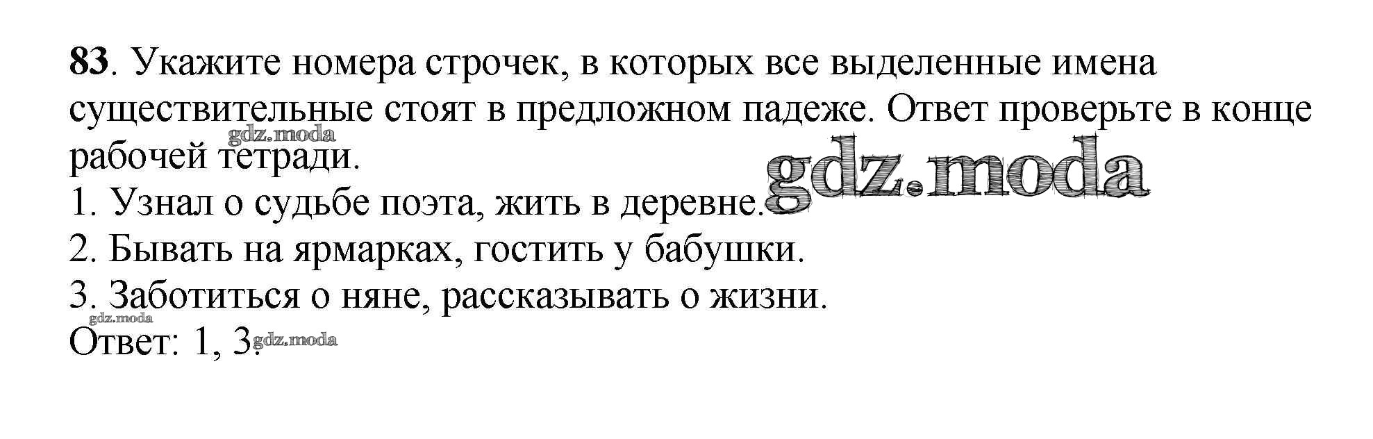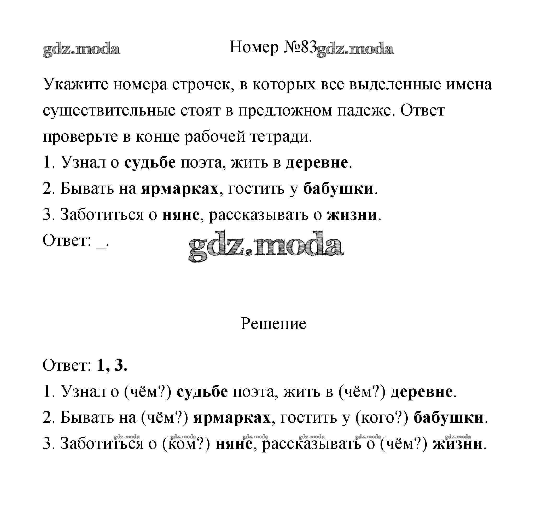 ОТВЕТ на задание № 83 Рабочая тетрадь по Русскому языку 3 класс Климанова Перспектива