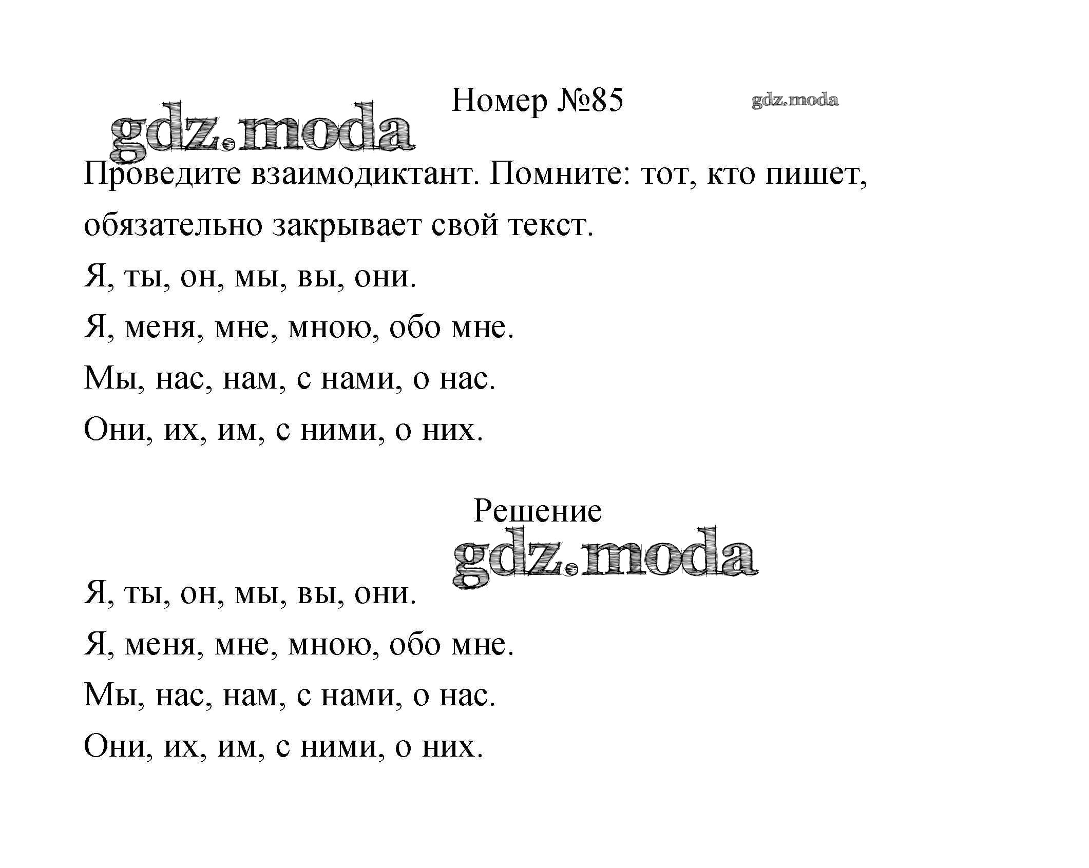 ОТВЕТ на задание № 85 Рабочая тетрадь по Русскому языку 3 класс Климанова Перспектива