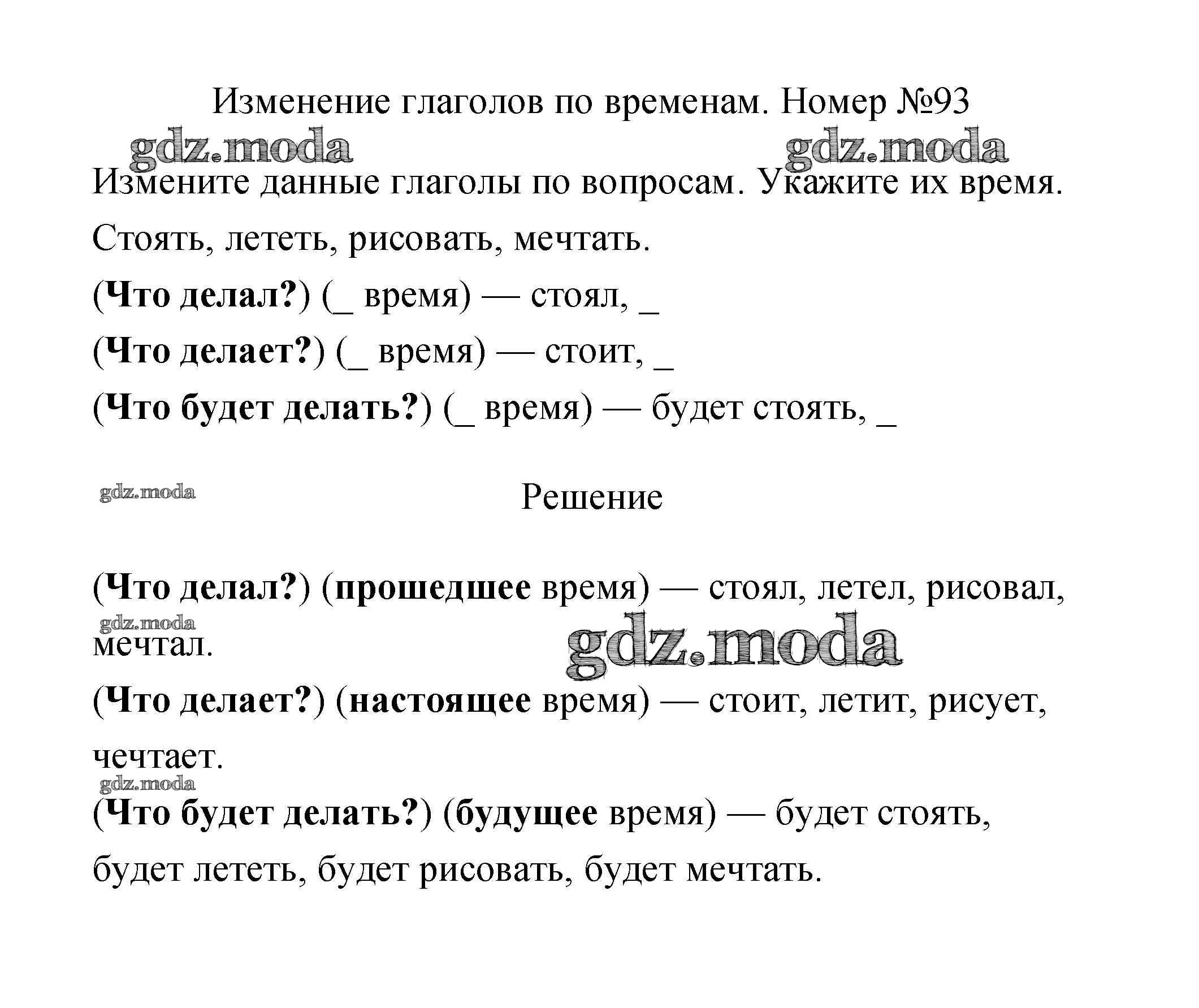 ОТВЕТ на задание № 93 Рабочая тетрадь по Русскому языку 3 класс Климанова Перспектива