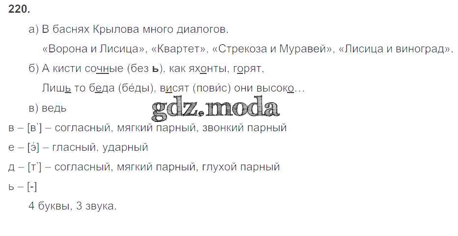 ГДЗ решение к заданию № 220 Русский язык 3 класс Нечаева Н.В. Фёдоров 2014 Часть 1, Часть 2 ФГОС бесплатно на гдз.мода!