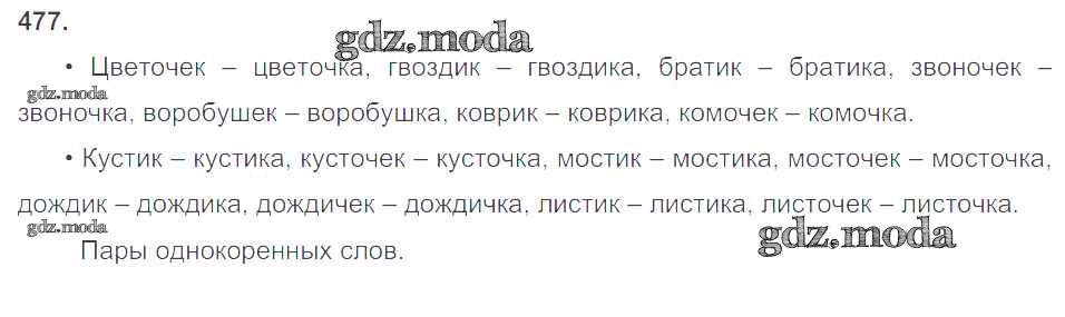 ОТВЕТ на задание № 477 Учебник по Русскому языку 3 класс Нечаева УМК