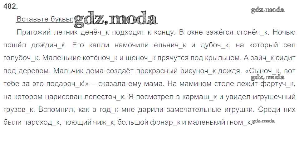 ГДЗ решение к заданию № 482 Русский язык 3 класс Нечаева Н.В. Фёдоров 2014 Часть 1, Часть 2 ФГОС бесплатно на гдз.мода!