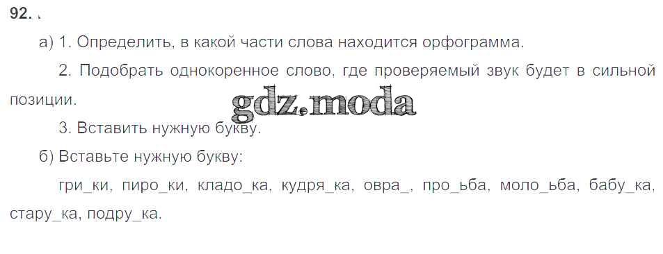 ГДЗ решение к заданию № 92 Русский язык 3 класс Нечаева Н.В. Фёдоров 2014 Часть 1, Часть 2 ФГОС бесплатно на гдз.мода!