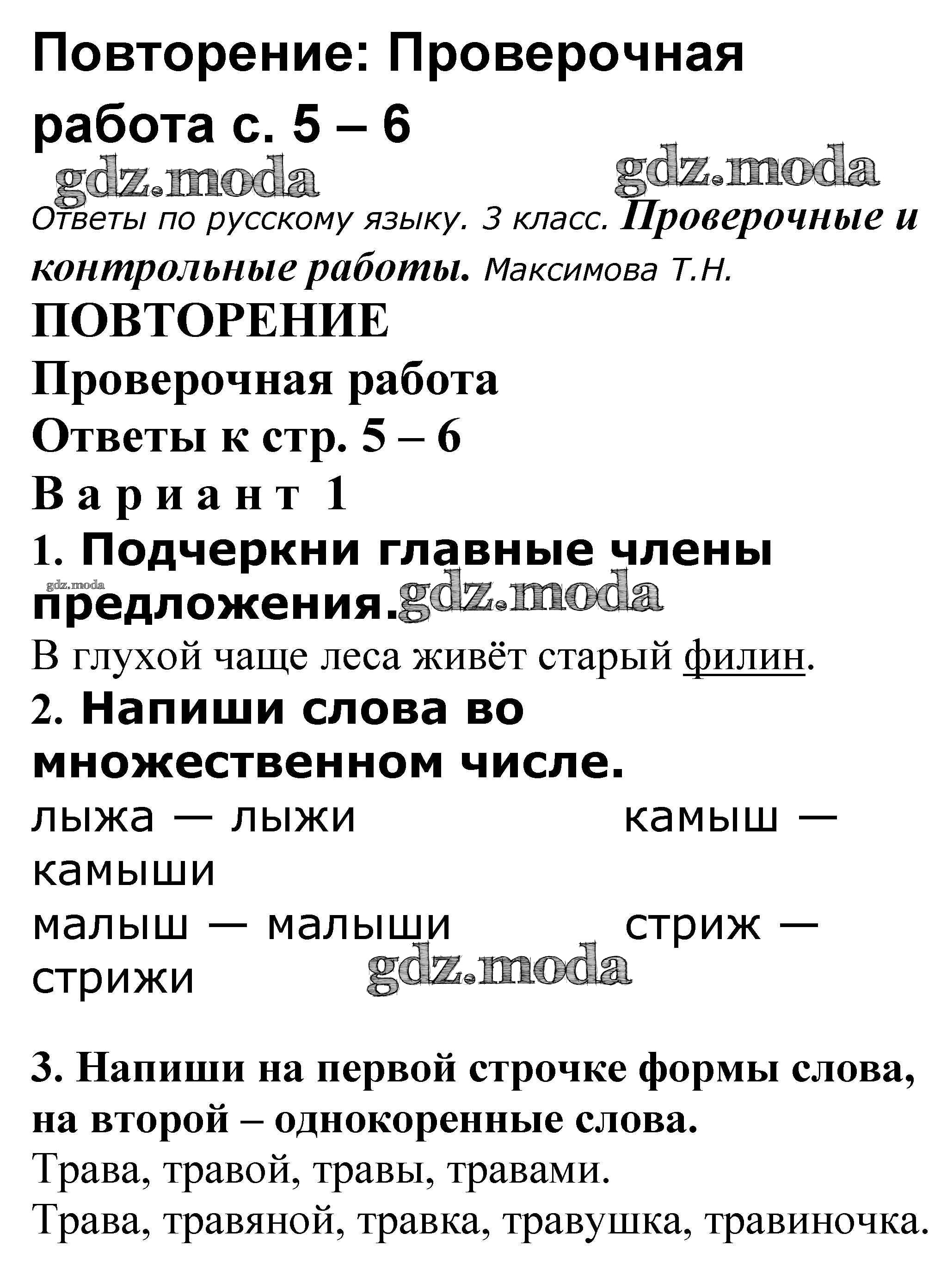 ОТВЕТ на задание № 5-6 Проверочные и контрольные работы по Русскому языку 3 класс Максимова