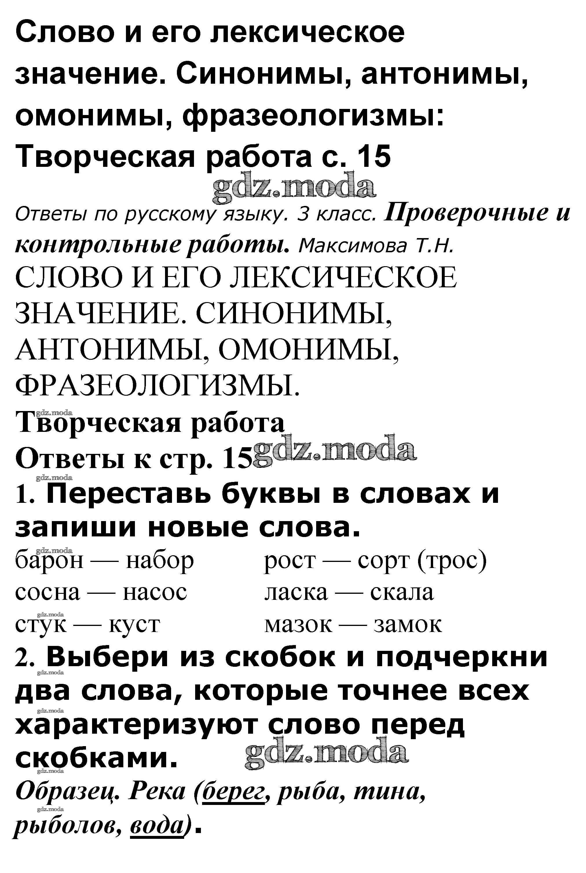 ОТВЕТ на задание № 15 Проверочные и контрольные работы по Русскому языку 3 класс Максимова