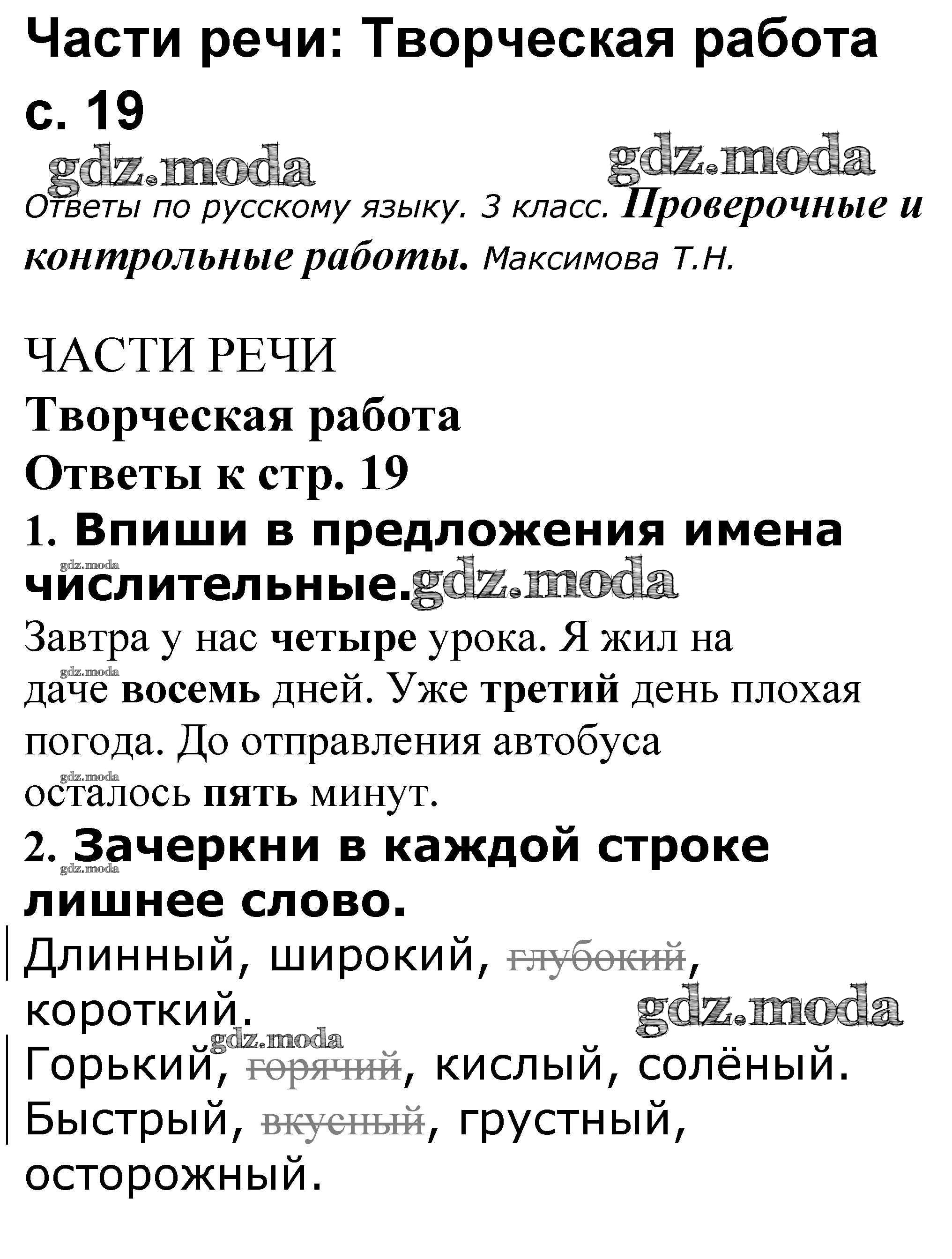 ОТВЕТ на задание № 19 Проверочные и контрольные работы по Русскому языку 3 класс Максимова