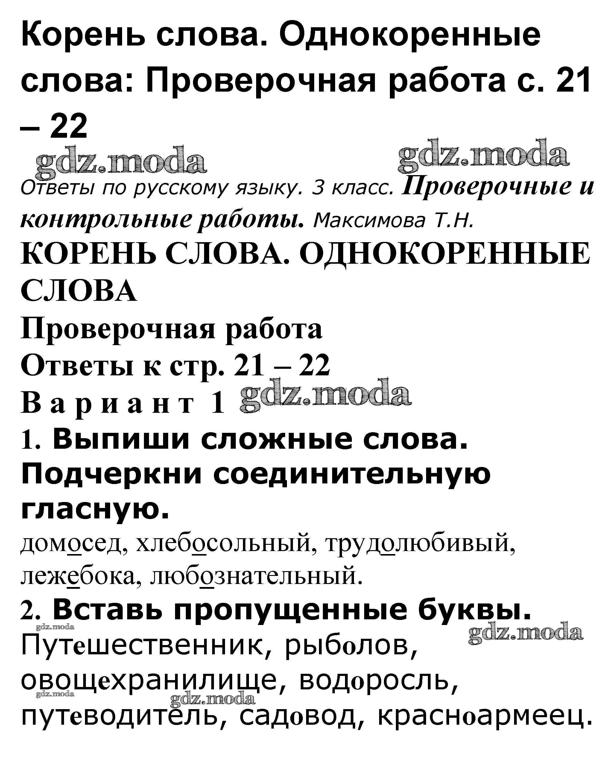 ГДЗ решение к заданию № 21-22 Русский язык 3 класс проверочные и контрольные работы Максимова Т.Н. ВАКО 2018 ФГОС бесплатно на гдз.мода!