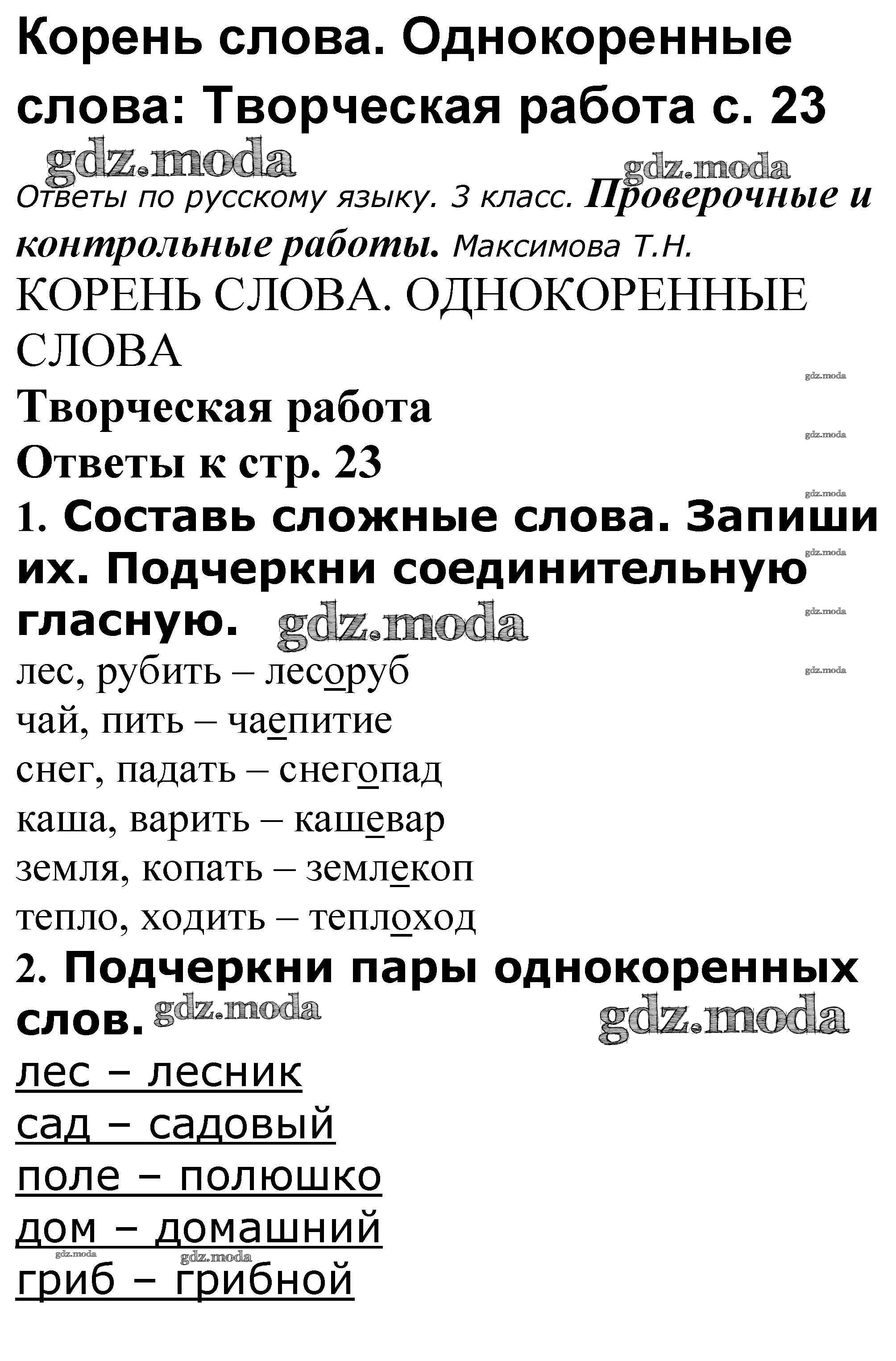ГДЗ решение к заданию № 23 Русский язык 3 класс проверочные и контрольные работы Максимова Т.Н. ВАКО 2018 ФГОС бесплатно на гдз.мода!
