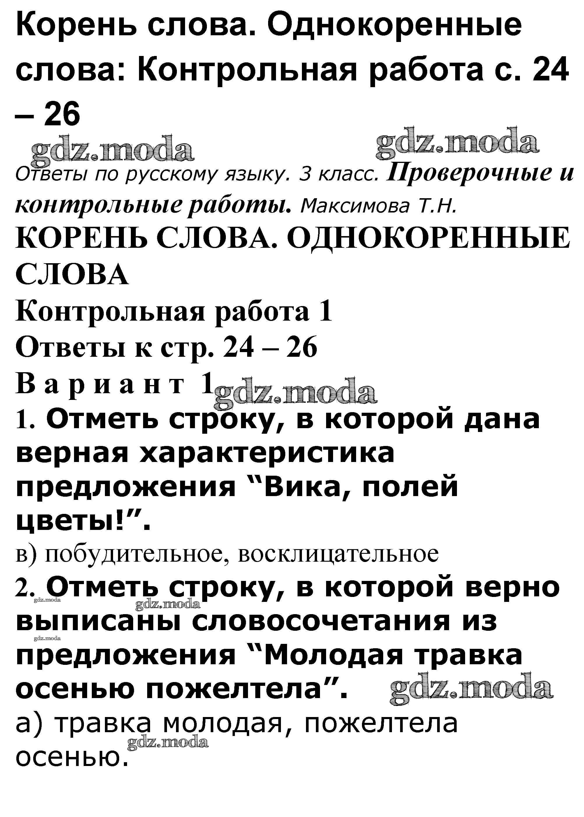 ГДЗ решение к заданию № 24-26 Русский язык 3 класс проверочные и контрольные работы Максимова Т.Н. ВАКО 2018 ФГОС бесплатно на гдз.мода!