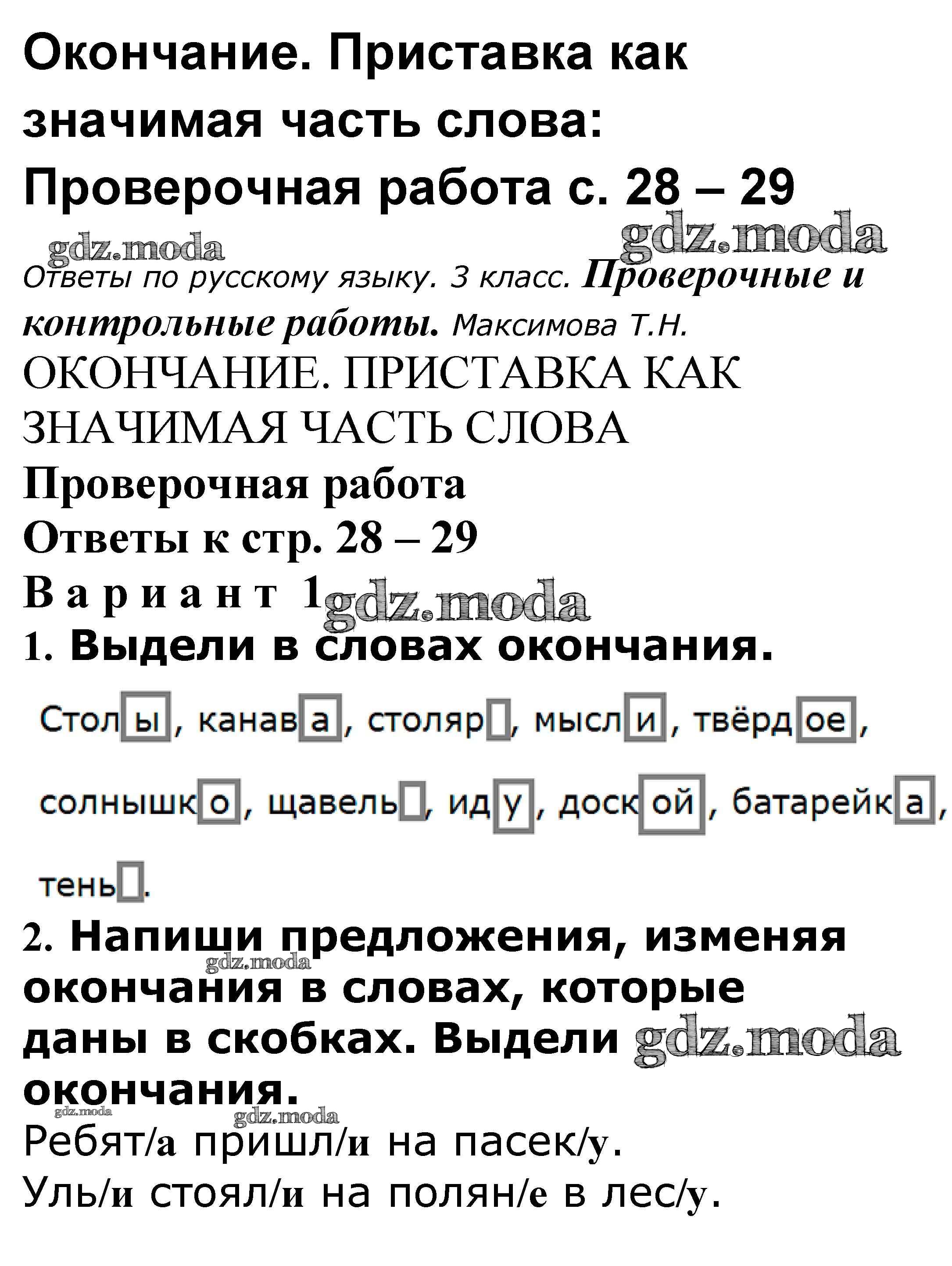 ОТВЕТ на задание № 28-29 Проверочные и контрольные работы по Русскому языку 3 класс Максимова