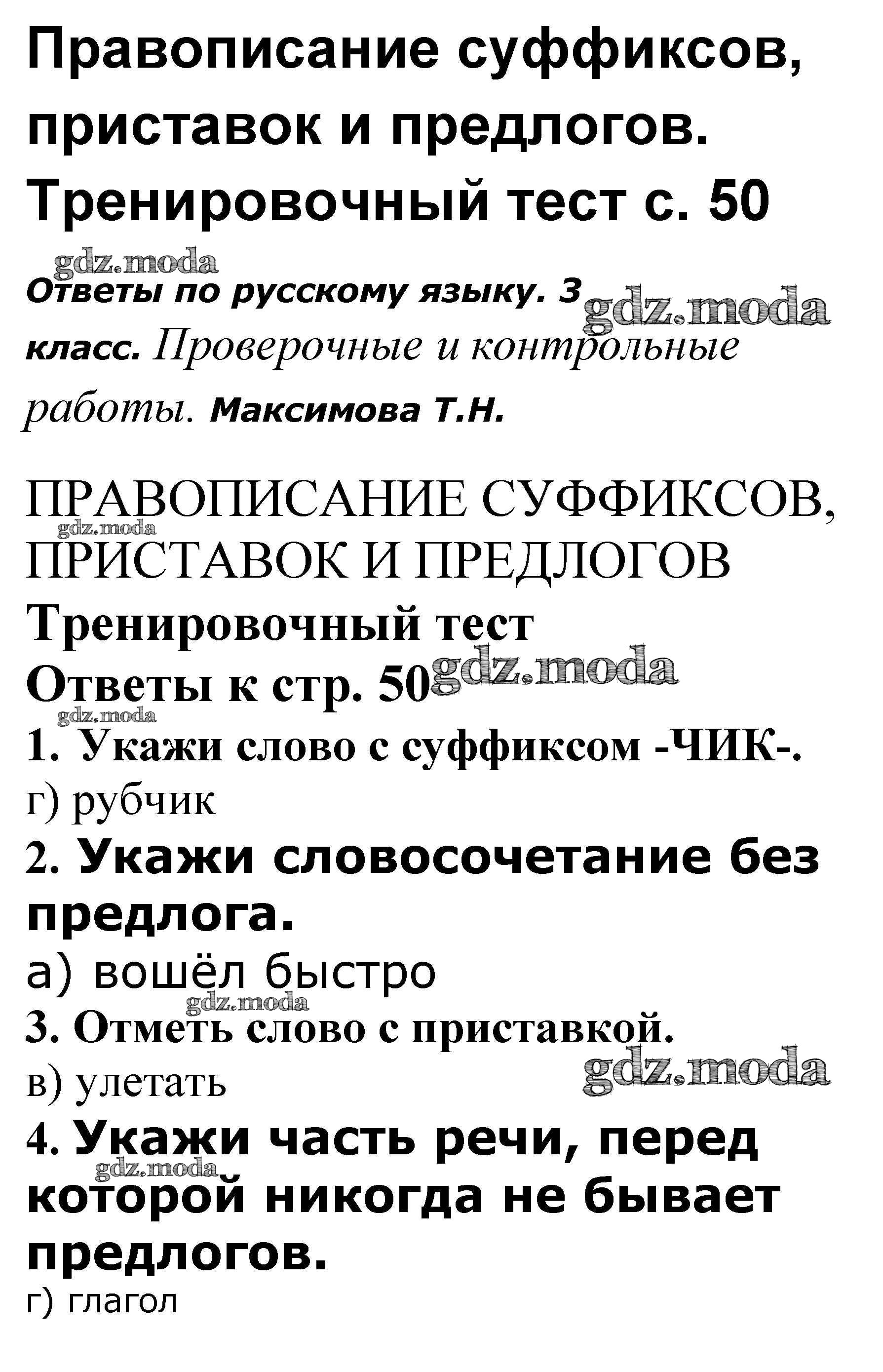 ГДЗ решение к заданию № 50 Русский язык 3 класс проверочные и контрольные работы Максимова Т.Н. ВАКО 2018 ФГОС бесплатно на гдз.мода!