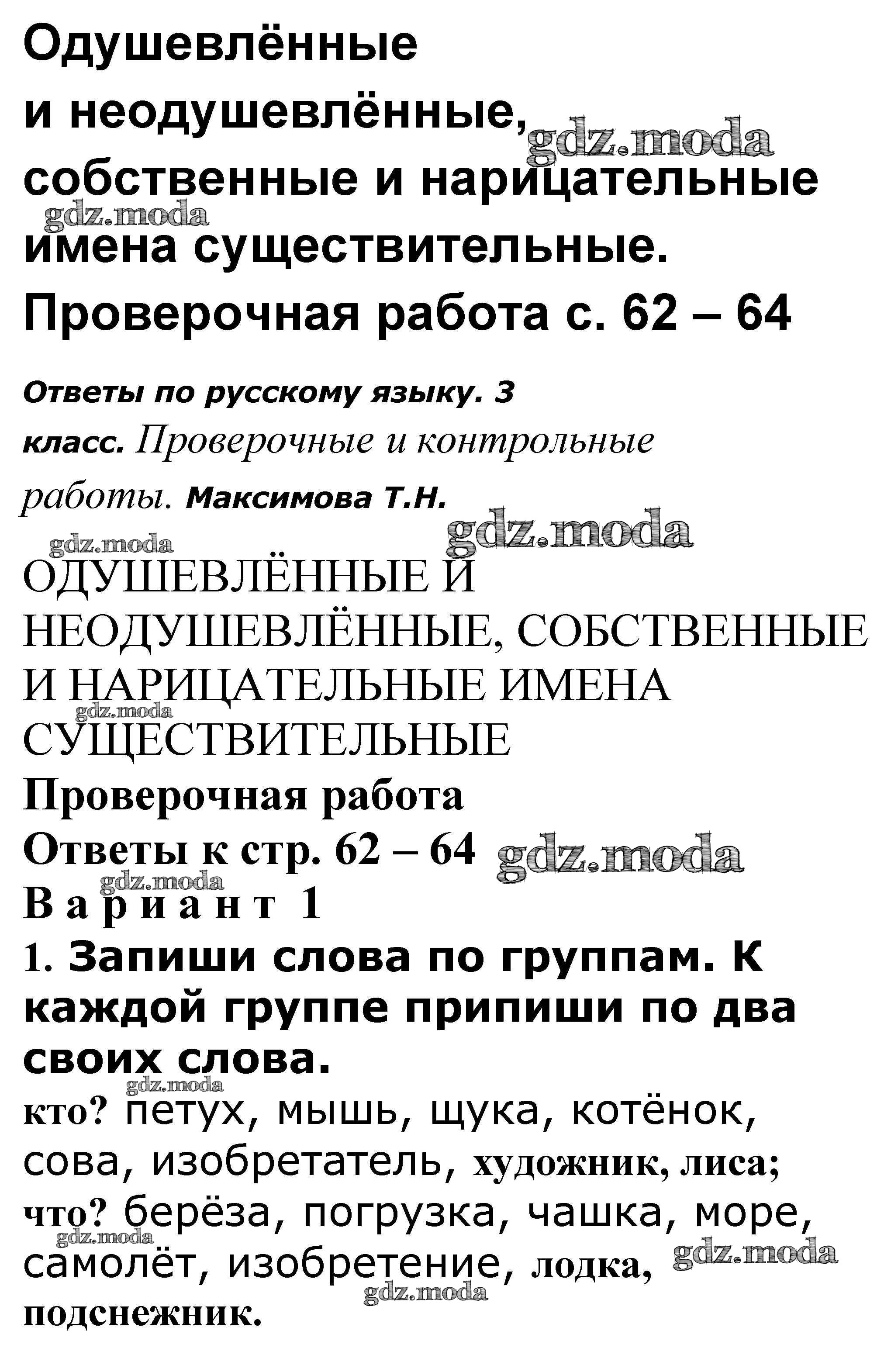 ОТВЕТ на задание № 62-64 Проверочные и контрольные работы по Русскому языку 3 класс Максимова
