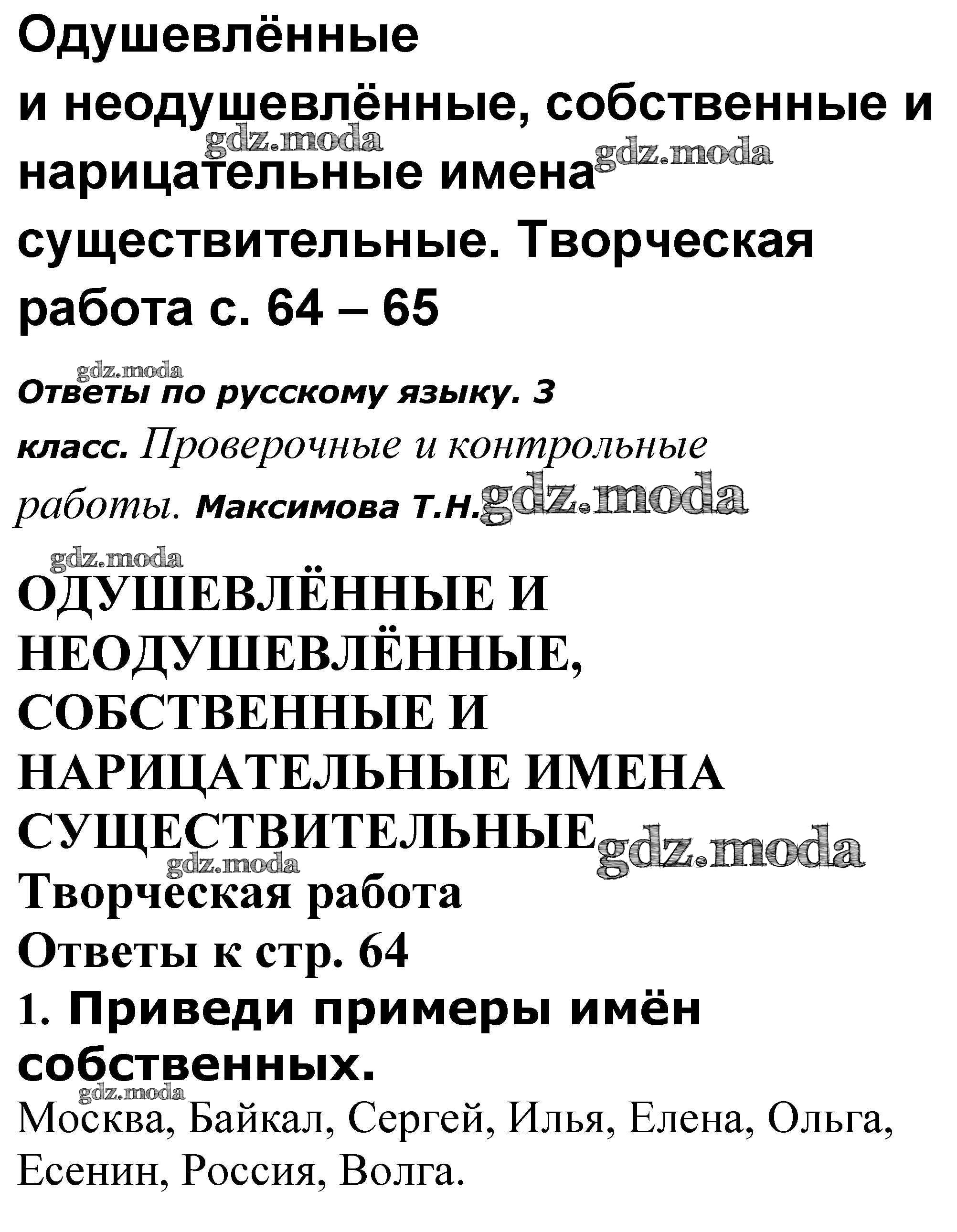 ОТВЕТ на задание № 64-65 Проверочные и контрольные работы по Русскому языку 3 класс Максимова