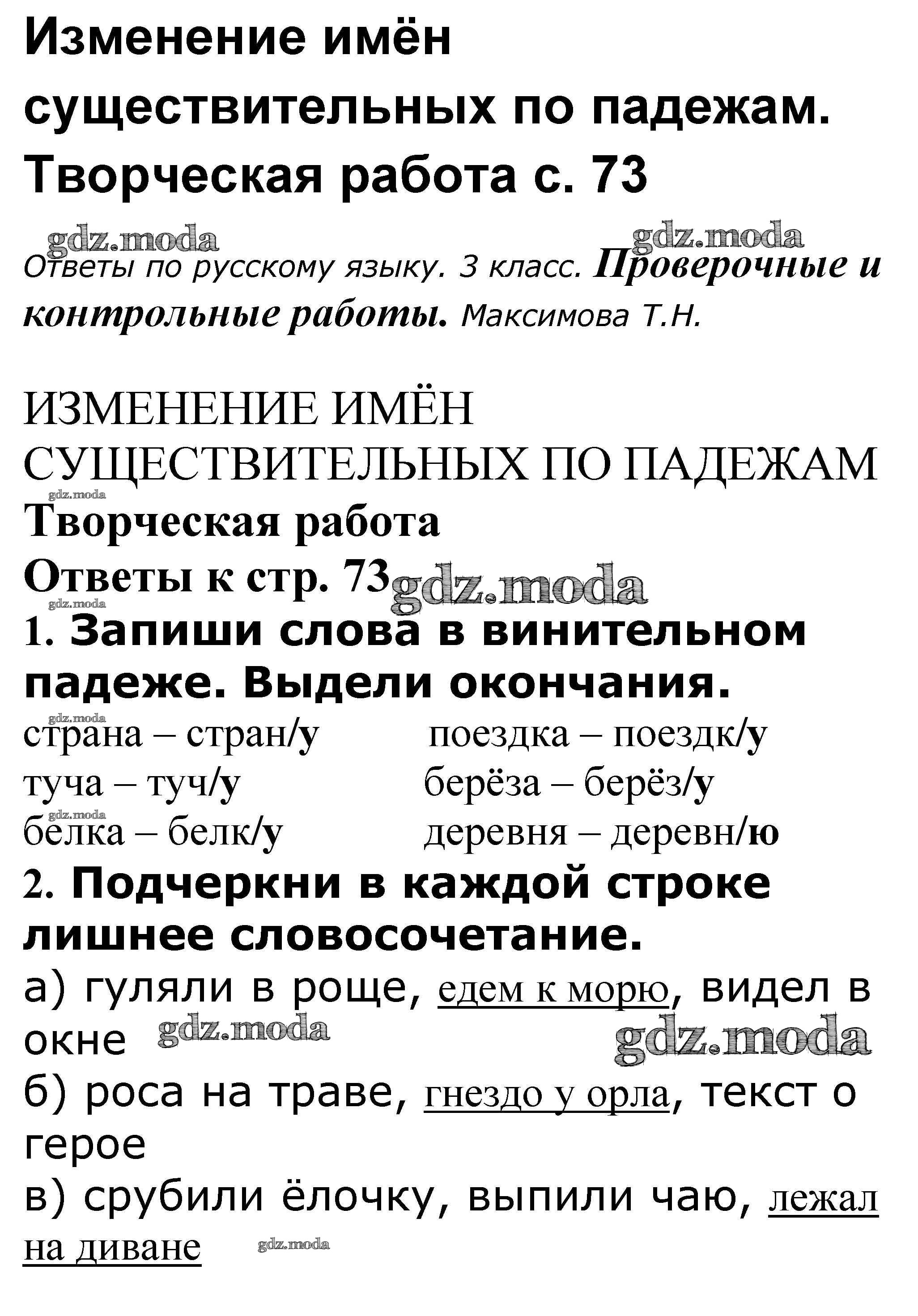 ОТВЕТ на задание № 73 Проверочные и контрольные работы по Русскому языку 3 класс Максимова