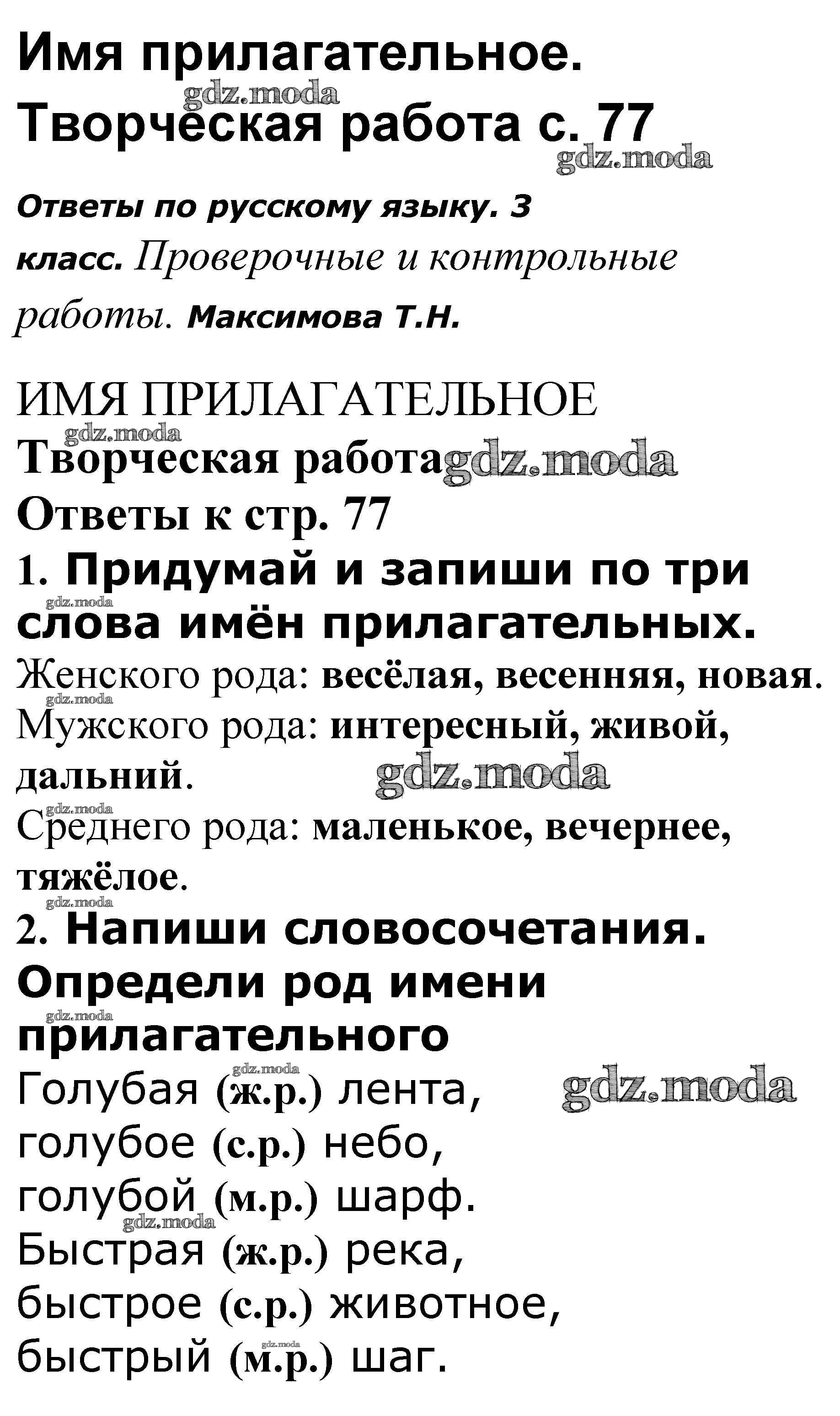ОТВЕТ на задание № 77 Проверочные и контрольные работы по Русскому языку 3 класс Максимова