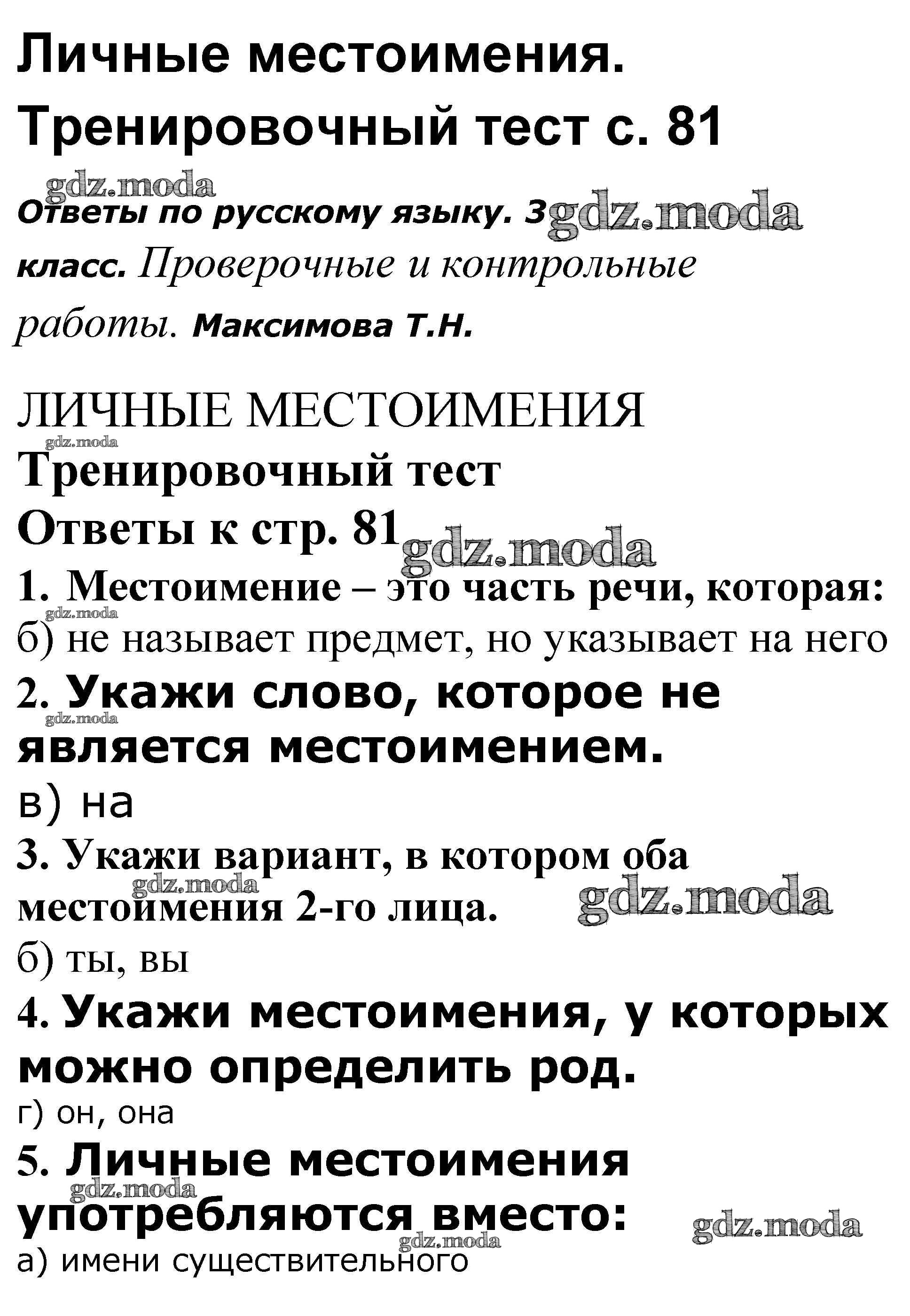 ГДЗ решение к заданию № 81 Русский язык 3 класс проверочные и контрольные работы Максимова Т.Н. ВАКО 2018 ФГОС бесплатно на гдз.мода!