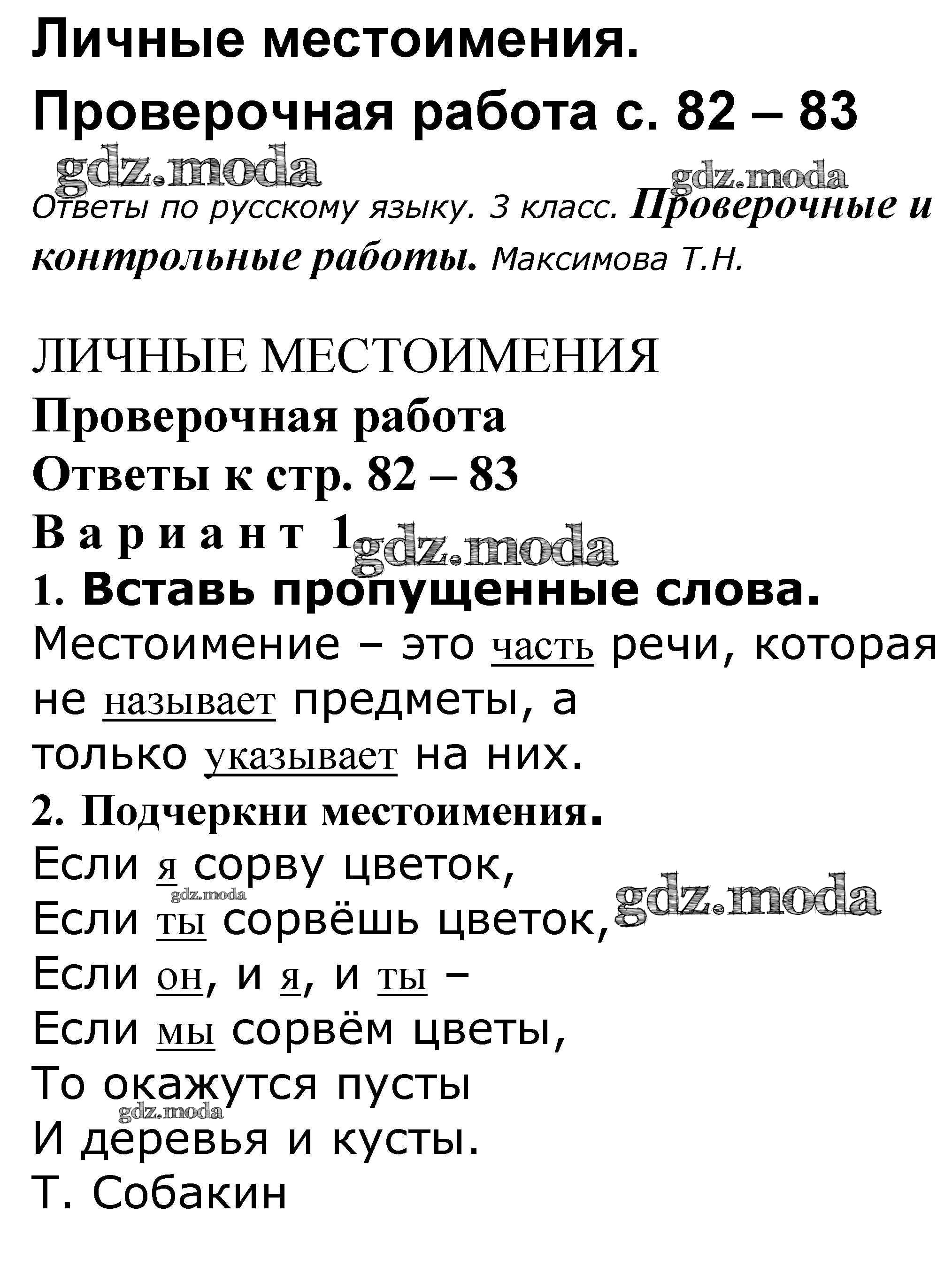 ОТВЕТ на задание № 82-83 Проверочные и контрольные работы по Русскому языку 3 класс Максимова
