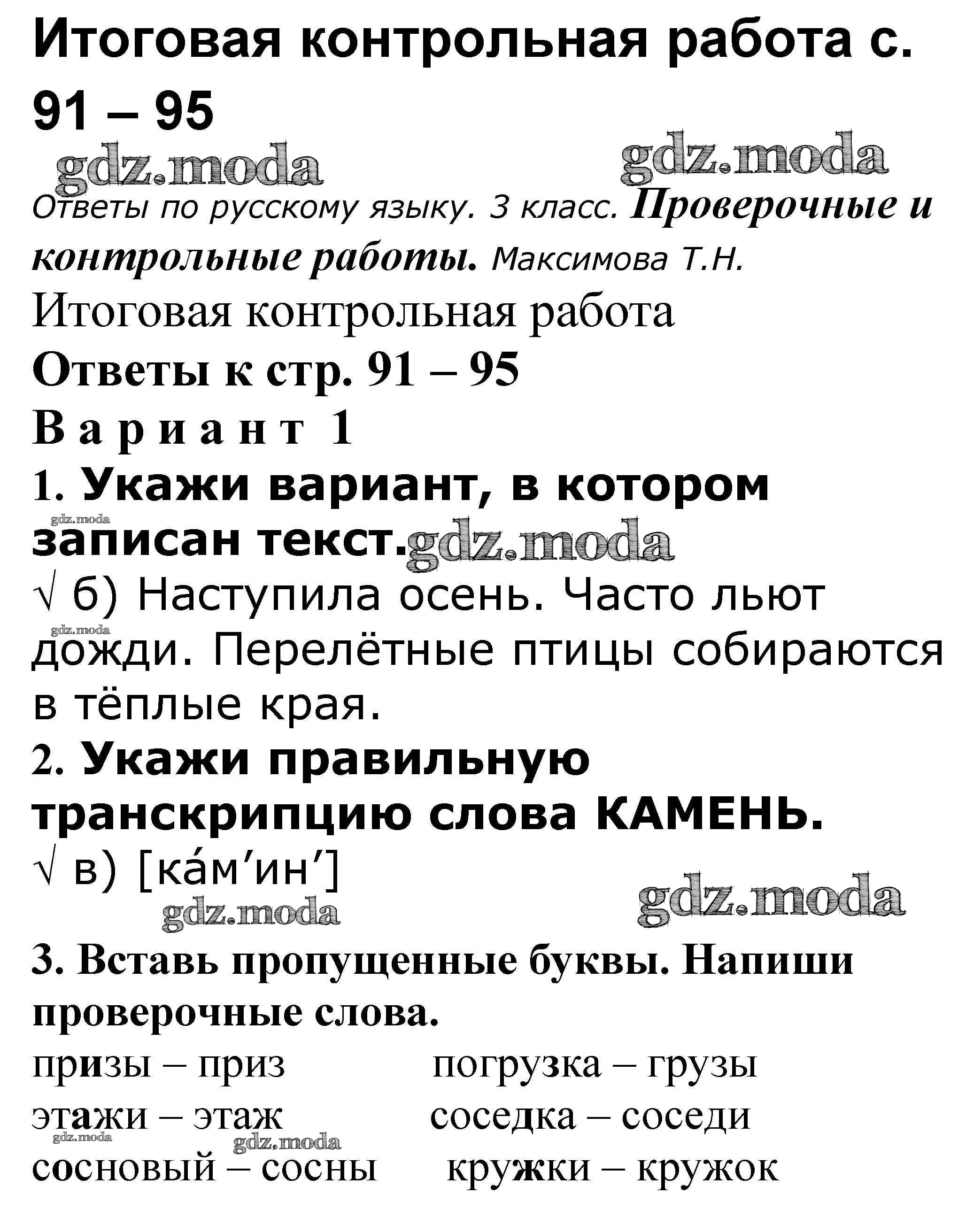 ОТВЕТ на задание № 91-95 Проверочные и контрольные работы по Русскому языку 3 класс Максимова