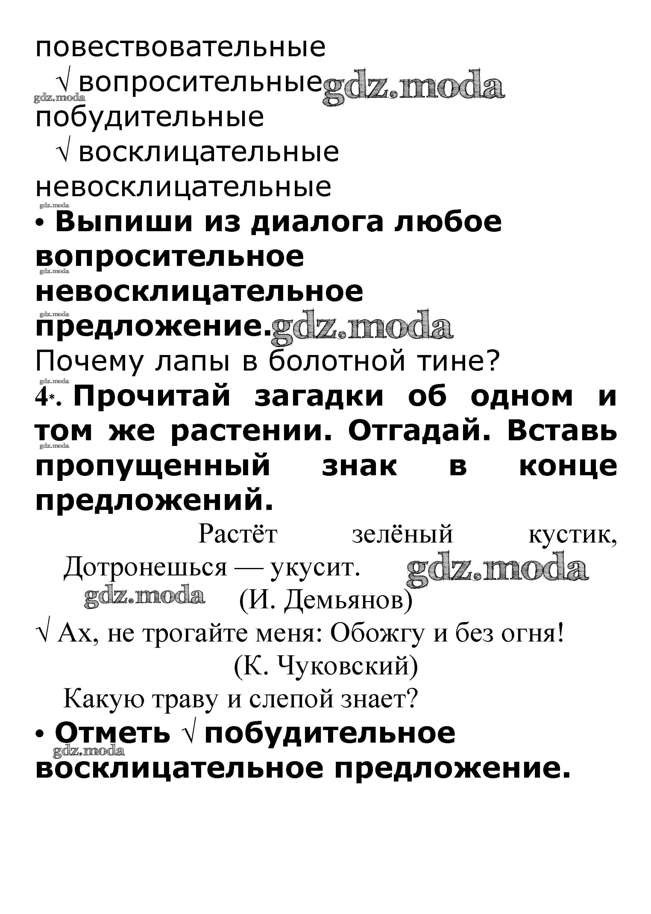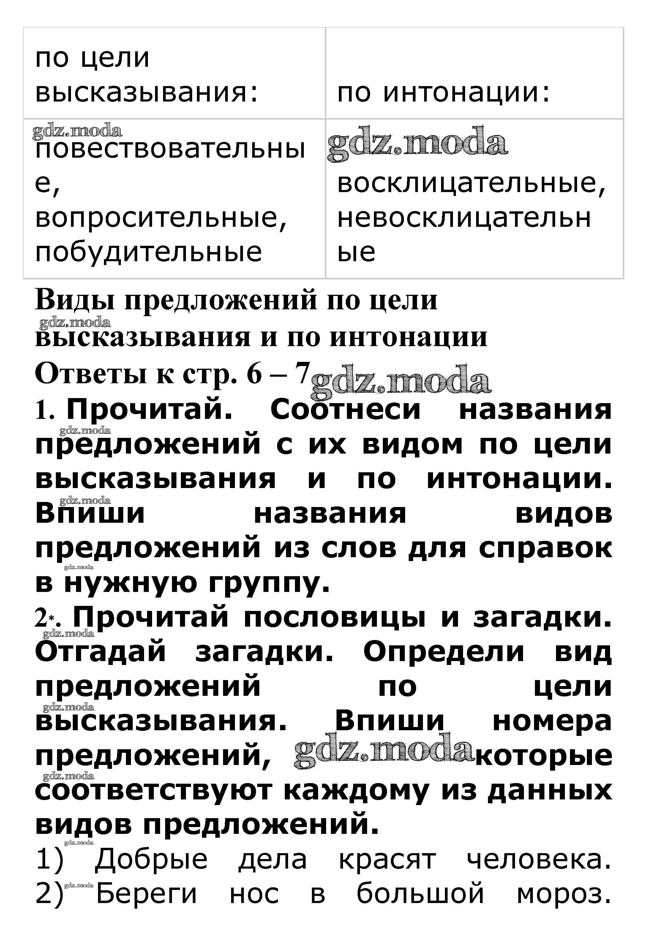 ОТВЕТ на задание № Предложение. Виды предложений по цели высказывания и по интонации стр. 6 – 7 Проверочные работы по Русскому языку 3 класс Канакина Школа России