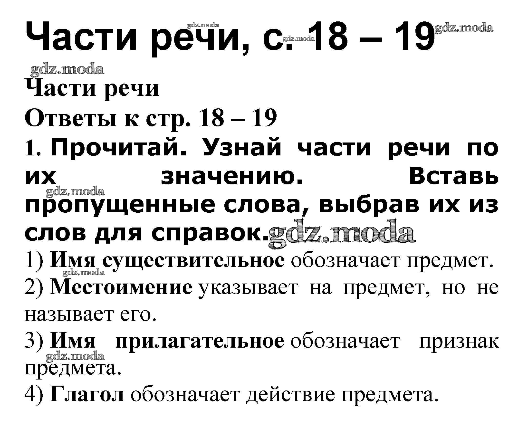 ГДЗ решение к заданию № Части речи стр. 18 – 19 Русский язык 3 класс проверочные работы Канакина В.П. Просвещение 2018 ФГОС бесплатно на гдз.мода!