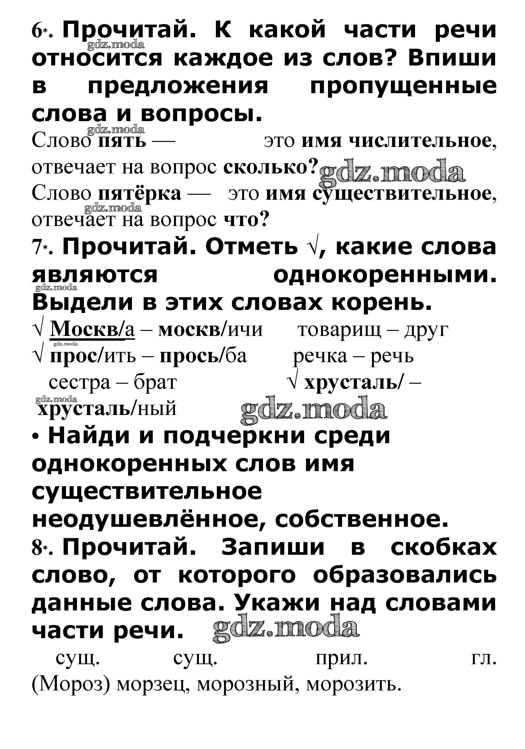 ОТВЕТ на задание № Части речи стр. 18 – 19 Проверочные работы по Русскому языку 3 класс Канакина Школа России