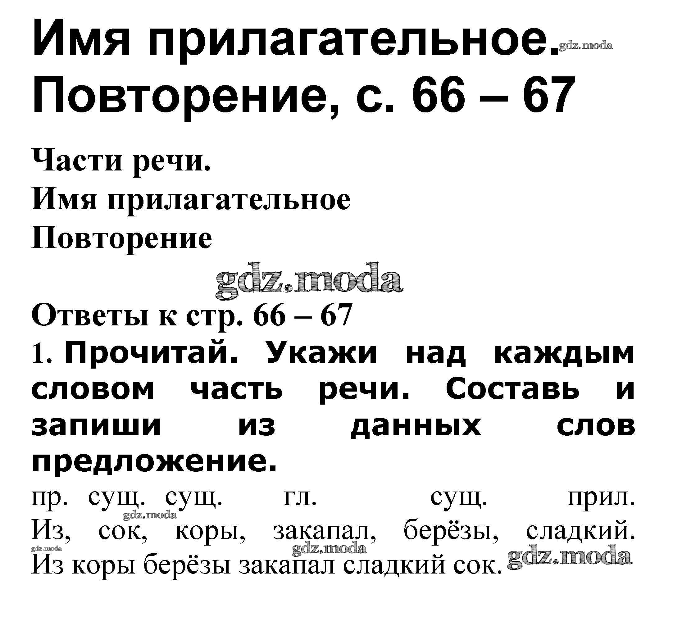 ГДЗ решение к заданию № Повторение стр. 66 – 67 Русский язык 3 класс проверочные работы Канакина В.П. Просвещение 2018 ФГОС бесплатно на гдз.мода!