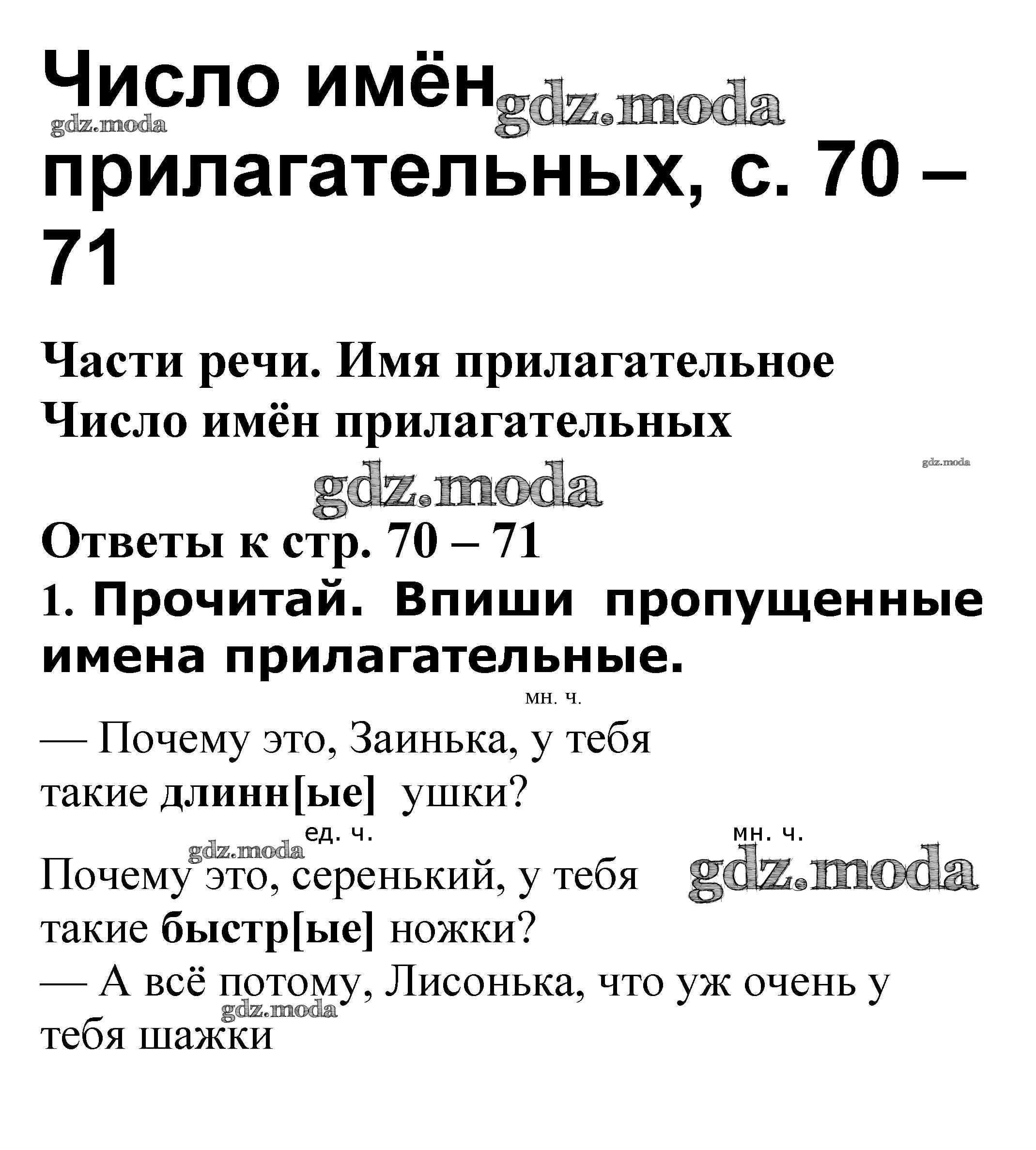 ГДЗ решение к заданию № Число имён прилагательных стр. 70 – 71 Русский язык 3 класс проверочные работы Канакина В.П. Просвещение 2018 ФГОС бесплатно на гдз.мода!