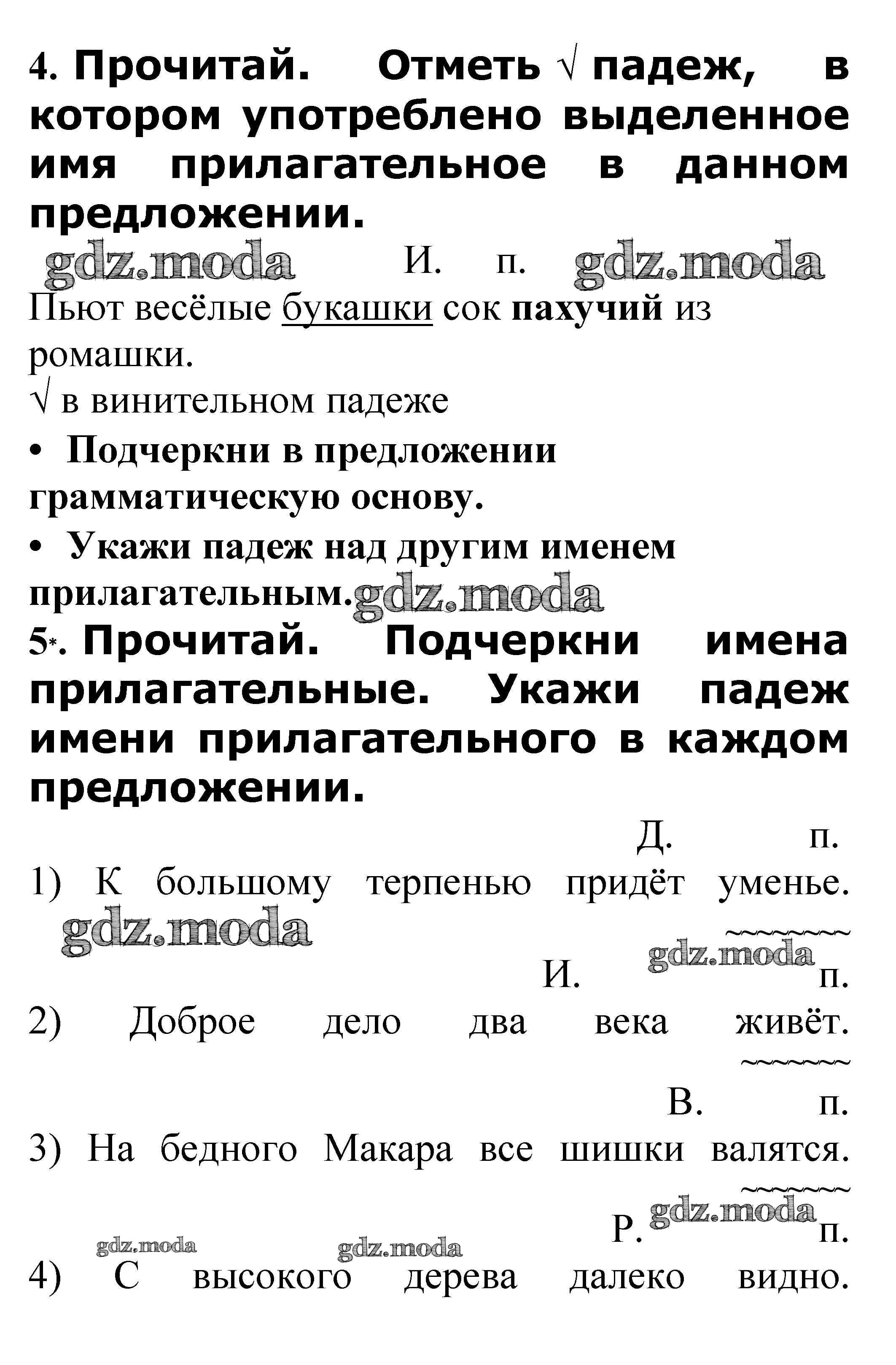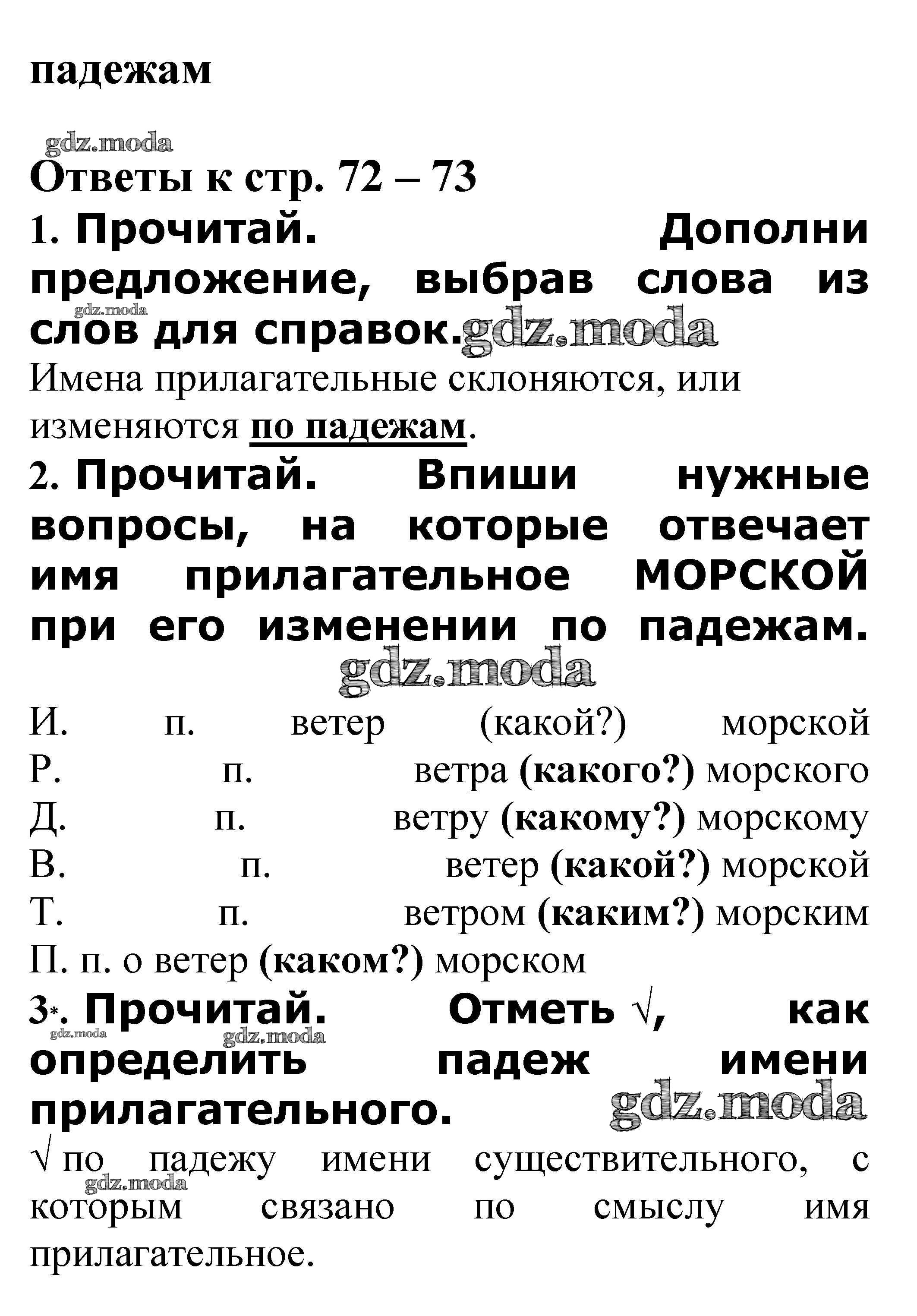 ОТВЕТ на задание № Изменение имён прилагательных по падежам стр. 72 – 73 Проверочные работы по Русскому языку 3 класс Канакина Школа России