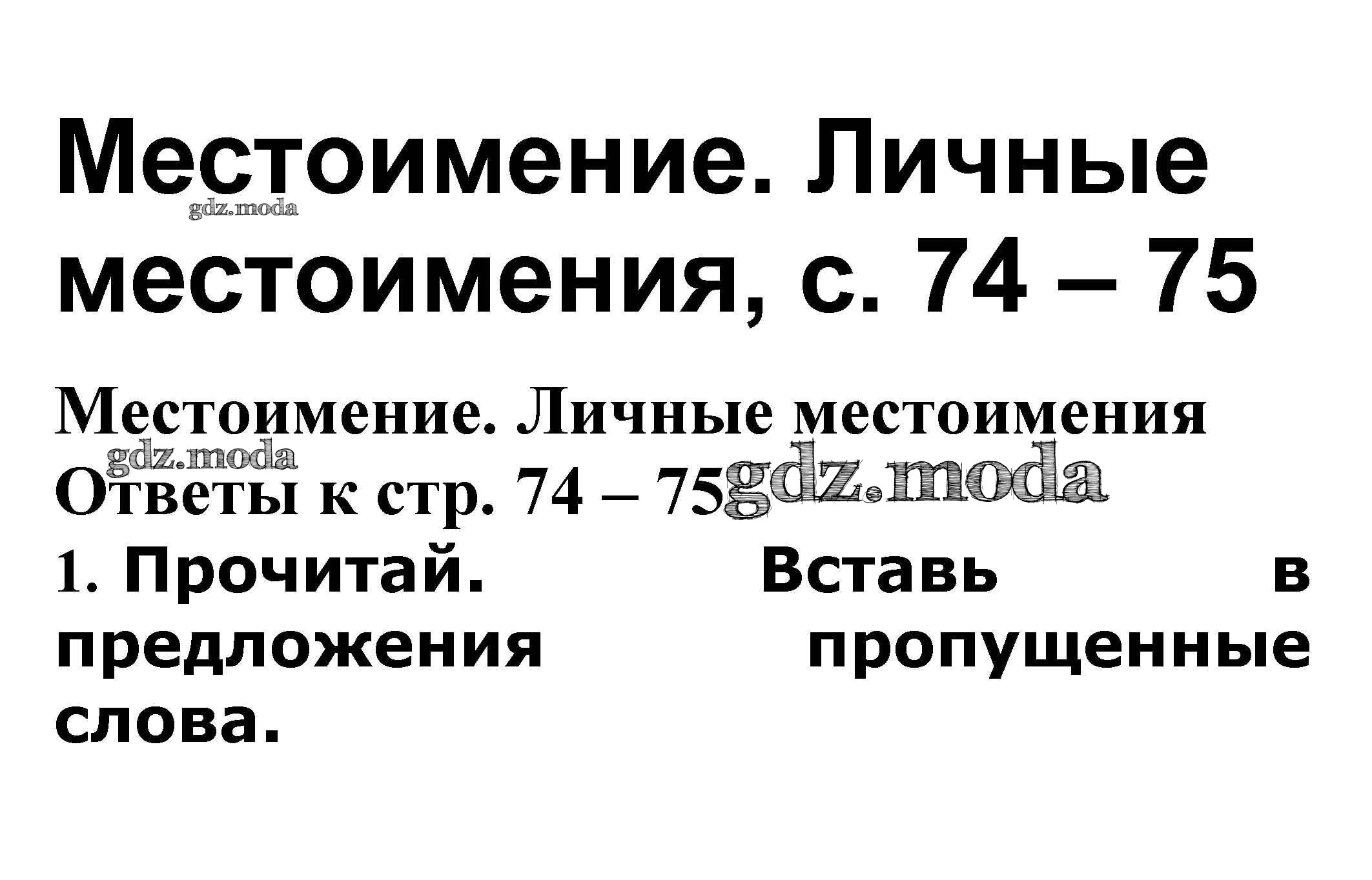 ОТВЕТ на задание № Личные местоимения стр. 74 – 75 Проверочные работы по Русскому языку 3 класс Канакина Школа России
