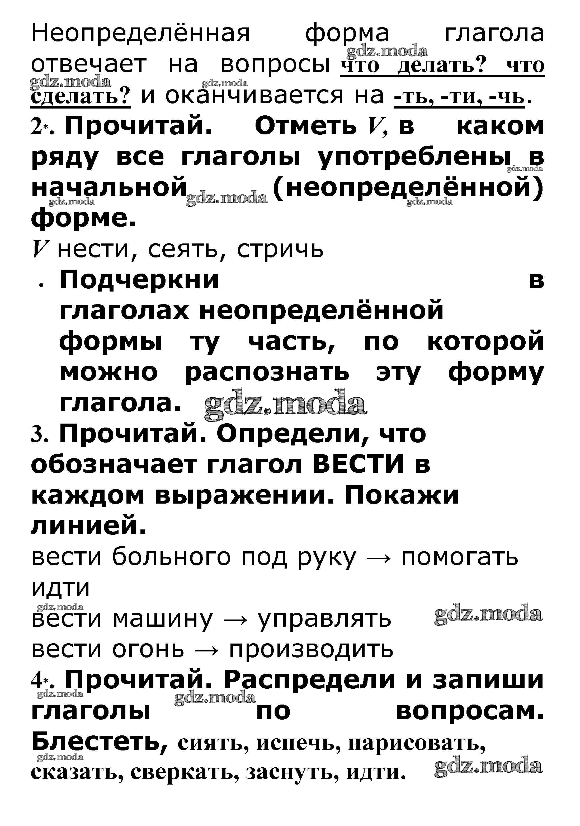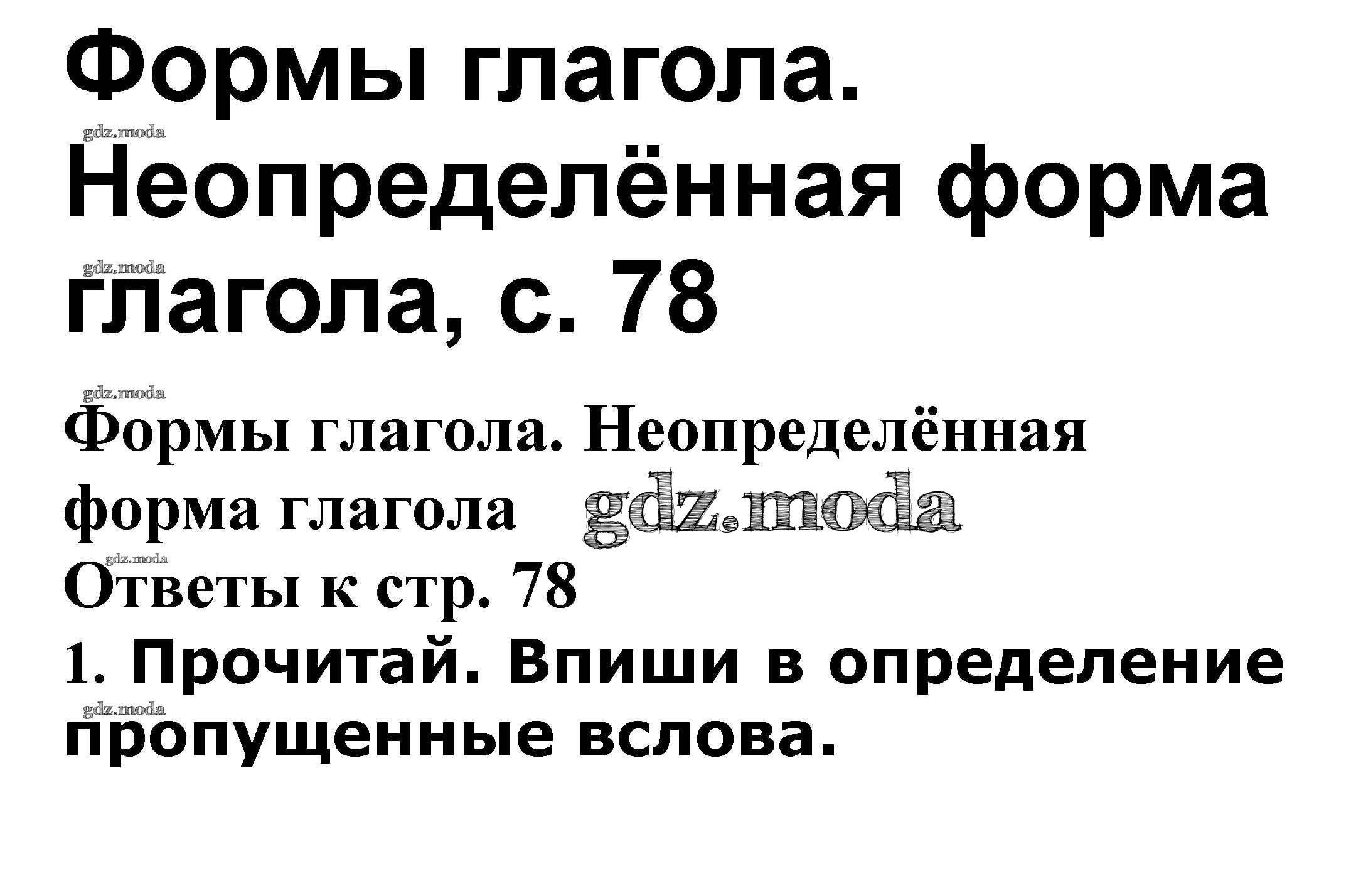 ОТВЕТ на задание № Формы глагола. Неопределённая форма глагола стр. 78 Проверочные работы по Русскому языку 3 класс Канакина Школа России